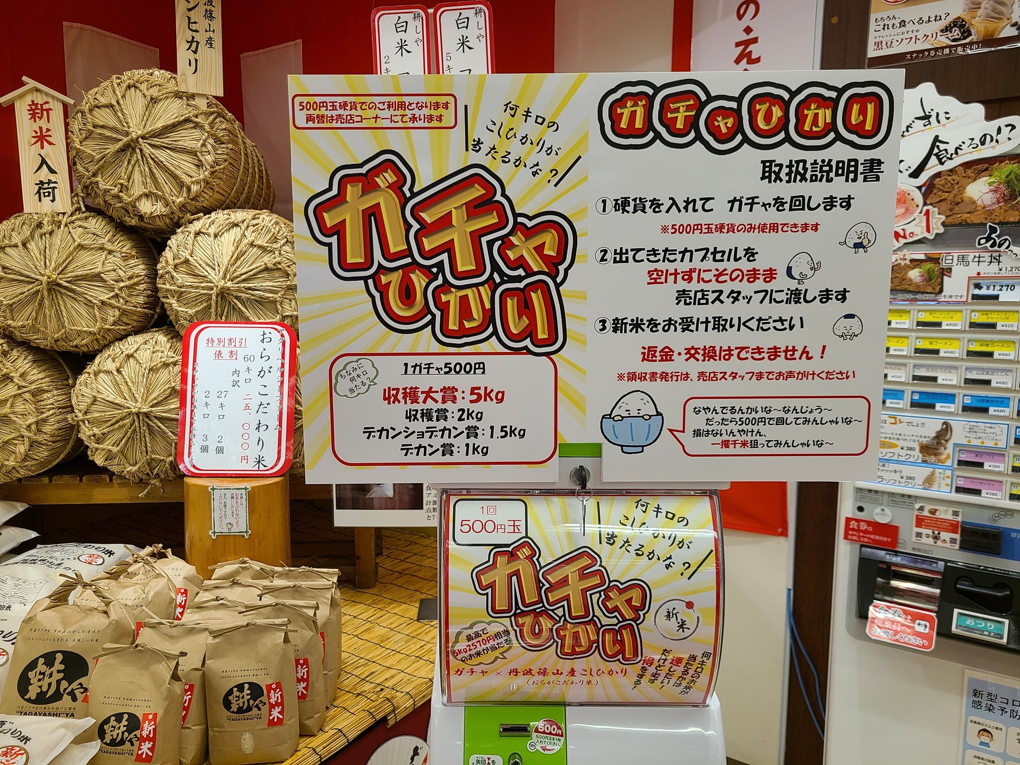「ガチャひかり」をご用意。最大5kg(2570円相当)のお米が当たります。