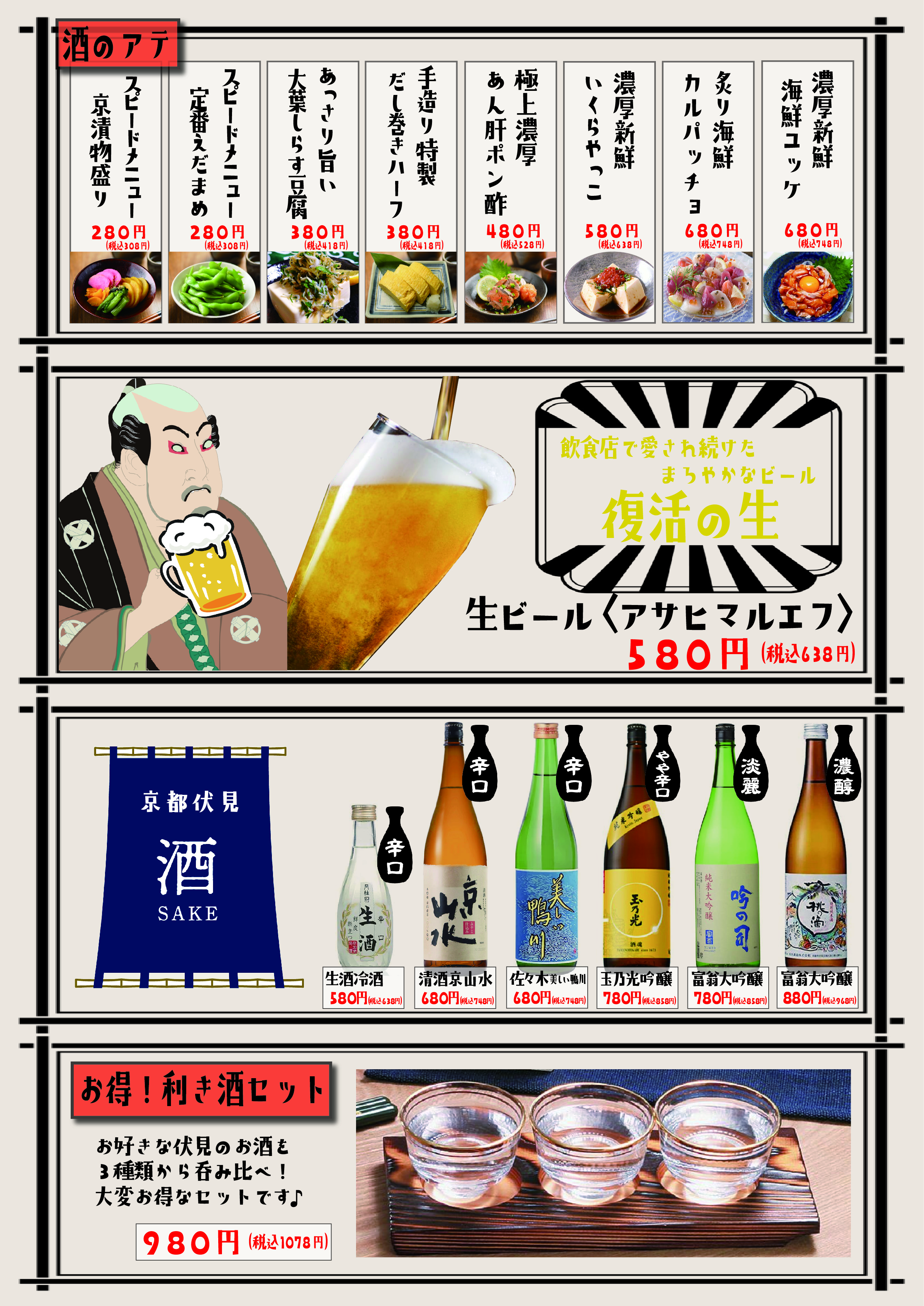 女性におすすめのミニ海鮮度3つとお吸い物、季節の小鉢をセットにした【選べるミニ海鮮丼セット(税込1,518円)】や京都伏見より仕入れました日本酒(税込638円~)をラインナップ。