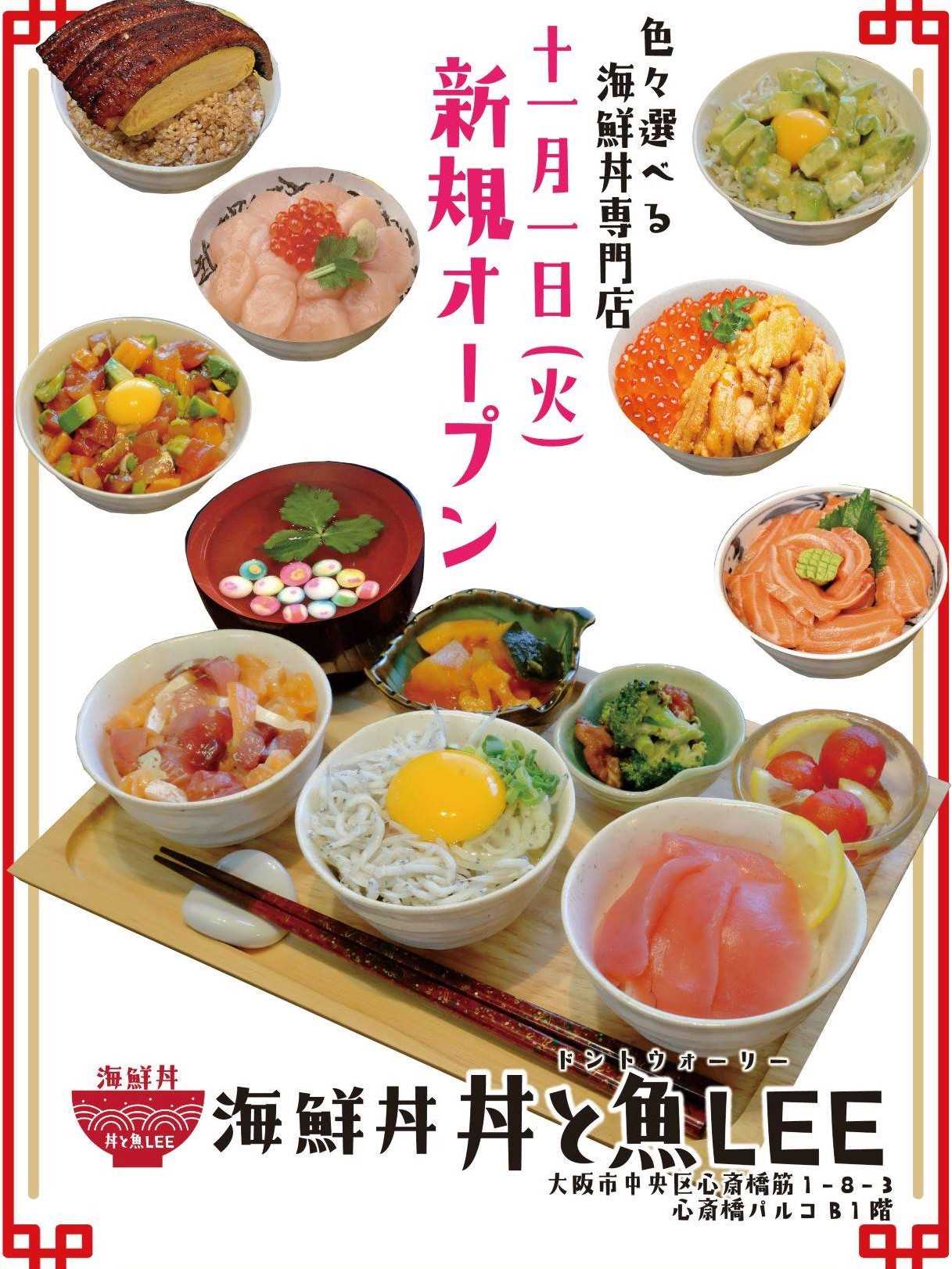 心斎橋パルコ地下1階に新鮮海鮮ネタを全国各地から取り寄せた、海鮮丼メニューの【丼と魚LEE(ドントウォーリー)】がオープン致します。