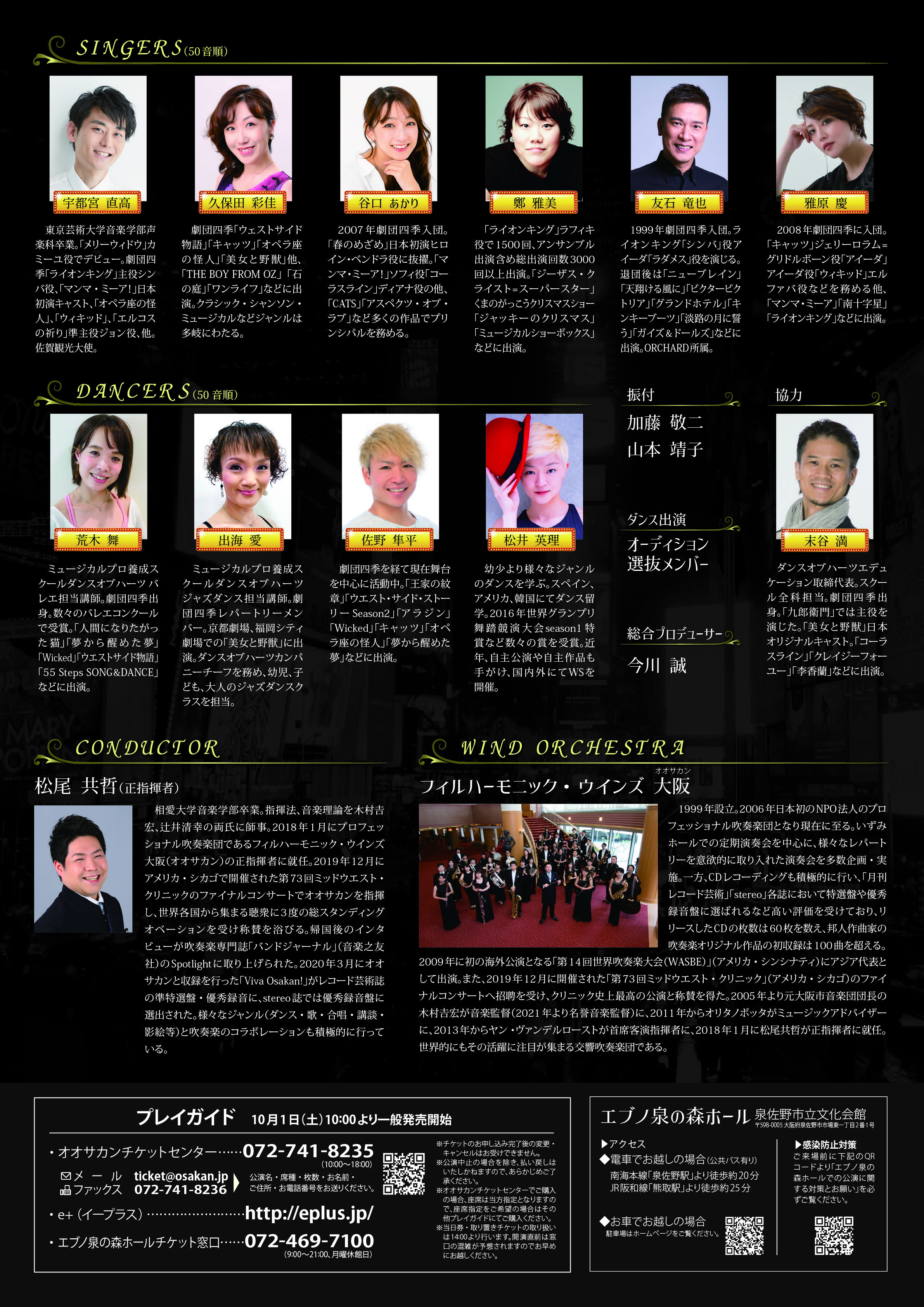 劇団四季出身メンバーを中心とした一流アーティストたちによる歌とダンス、2度の海外公演を行い世界的にもその活躍に注目が集まる交響吹奏楽団「フィルハーモニック・ウインズ大阪」による吹奏楽の演奏。そのコラボレーション公演がどのように行われるのか、リハーサル映像や貴重な対談映像などをお送りいたします。