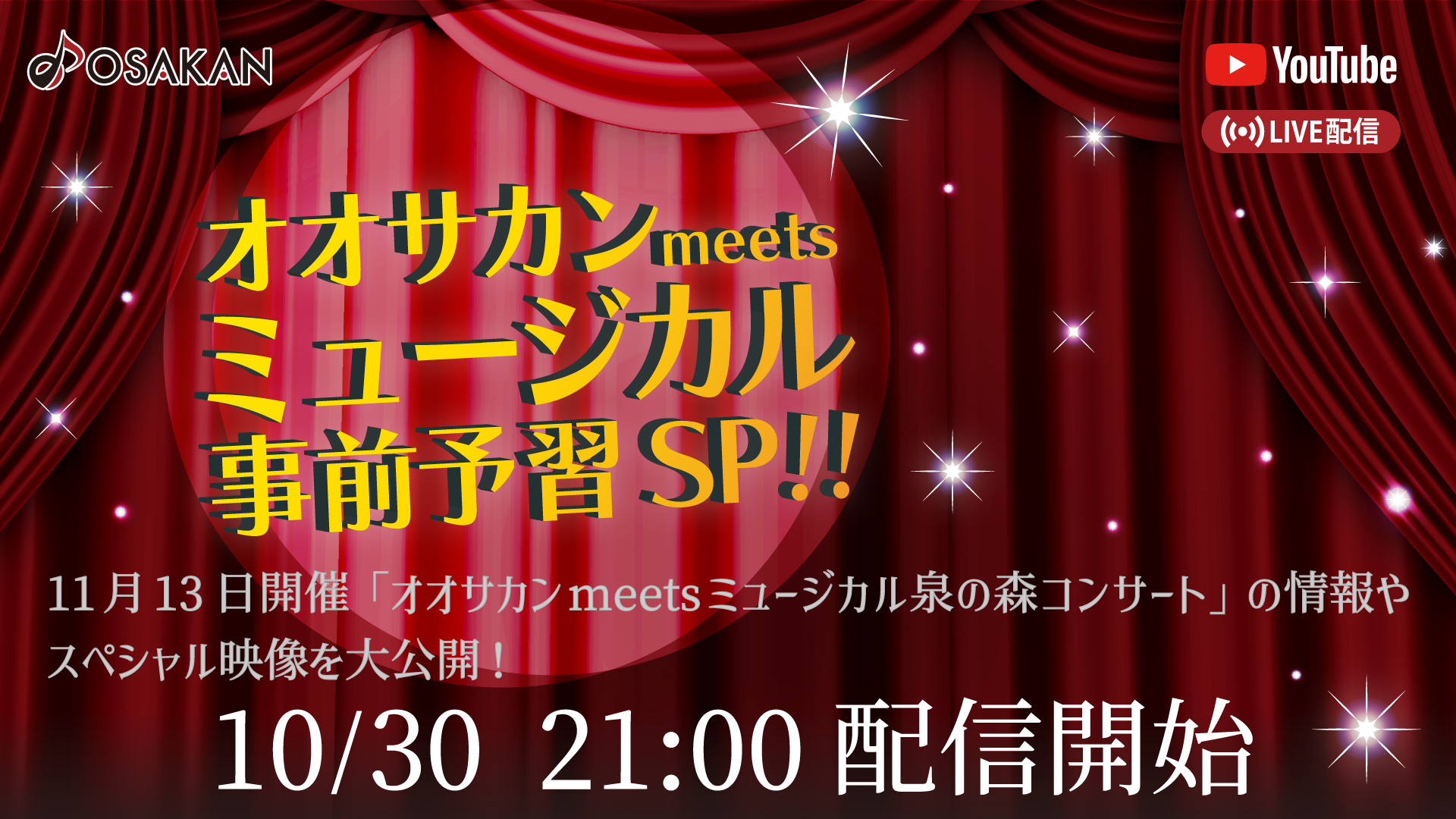 11月13日開催の「オオサカンmeetsミュージカル泉の森コンサート」に先駆けて、YouTubeにて事前予習を行える配信イベントを開催いたします。