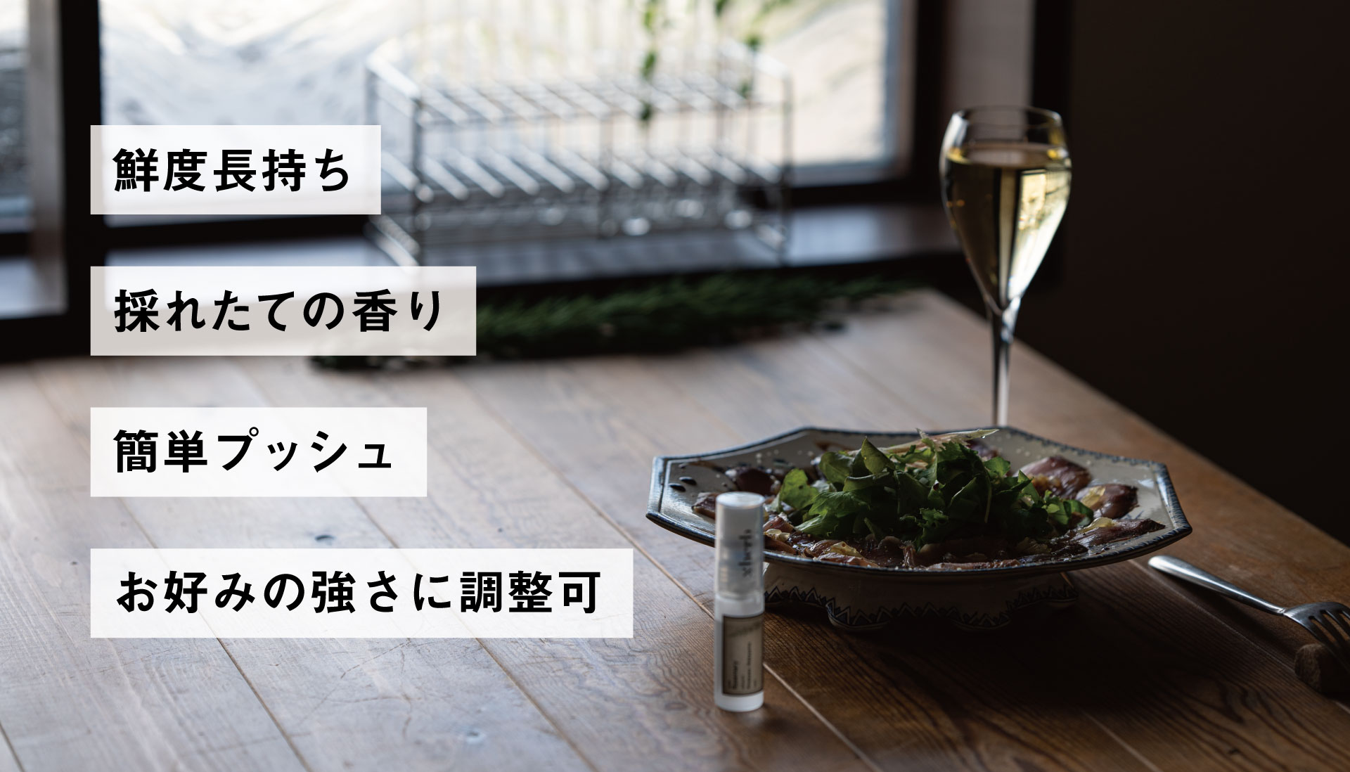 本商品は、ケミカルフリーで栽培したフレッシュハーブから香り成分を抽出したもので、食べ物や飲み物に吹きかけるだけで採れたての香りを長く楽しめます。また、自分の取り皿にだけ香りを加えられるため、好みに合わせてハーブの香りを加えることもできます。さらに、食べ物や飲み物に香りが加わることで、風味や味わいも変化します。
