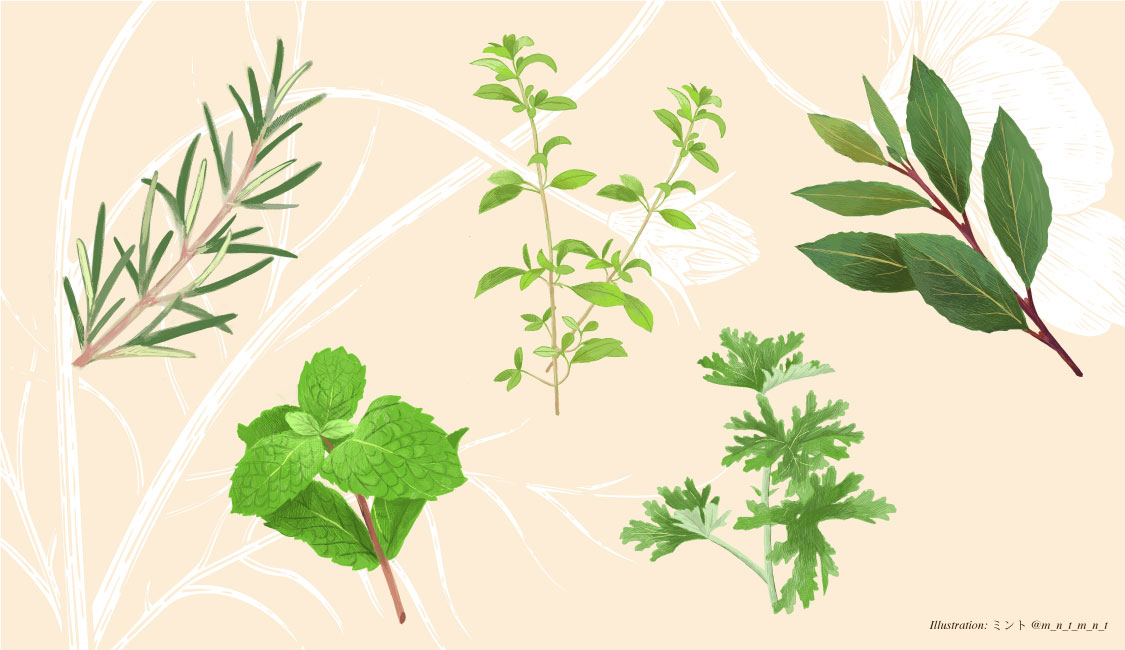 今回、先行販売を行うのは、【ローズマリー】、【マジョラム】、【ローレル】、【スペアミント】、【ローズゼラニウム】の5種類で、商品のご購入だけでなく、一緒に本商品が合うレシピを模索する「レシピ研究員」も募集します。