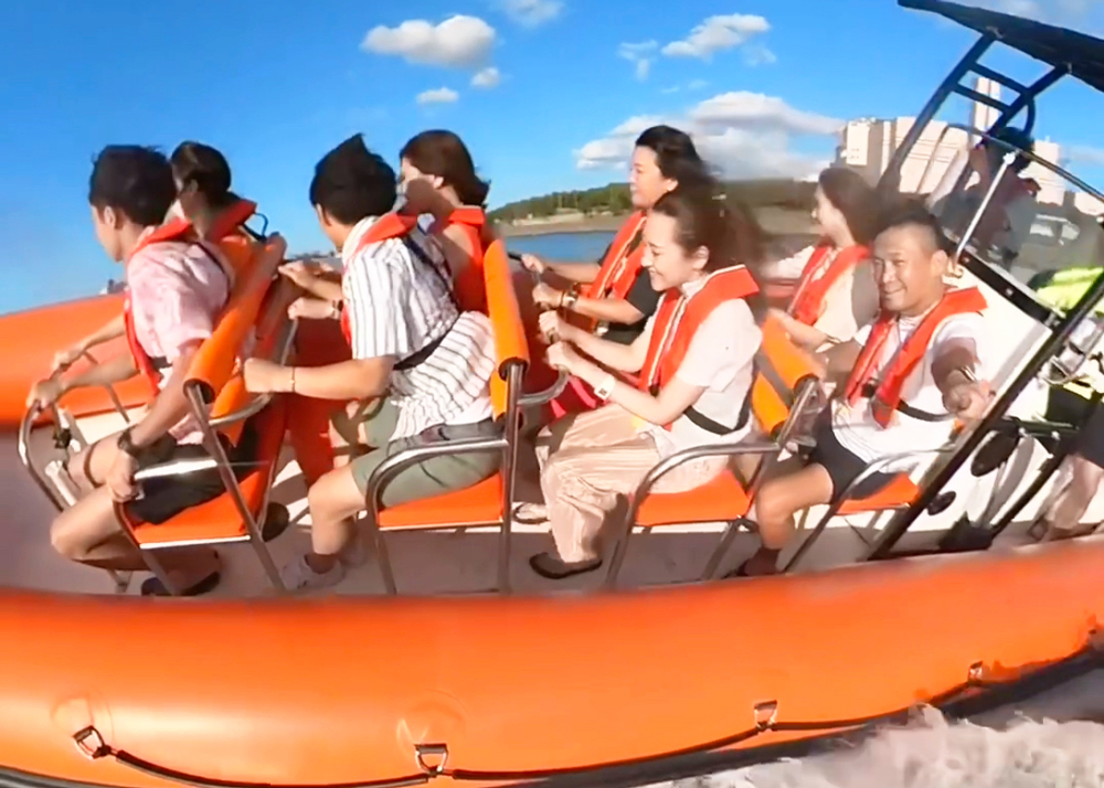 大阪北港マリーナHULLでは、舞洲付近を周遊する「水上ジェットコースター」をお楽しみいただけます。約20分間、ボートで猛スピードで水面を走り、波に跳ね返るボートの揺れを体感できるスリリングな水上ジェットコースター!ボートからは、いつもと違った大阪の景色が一望できます。子供から大人まで楽しめるアトラクションです。大阪のいつもと一味違った素敵な思い出を残せること間違いなし!