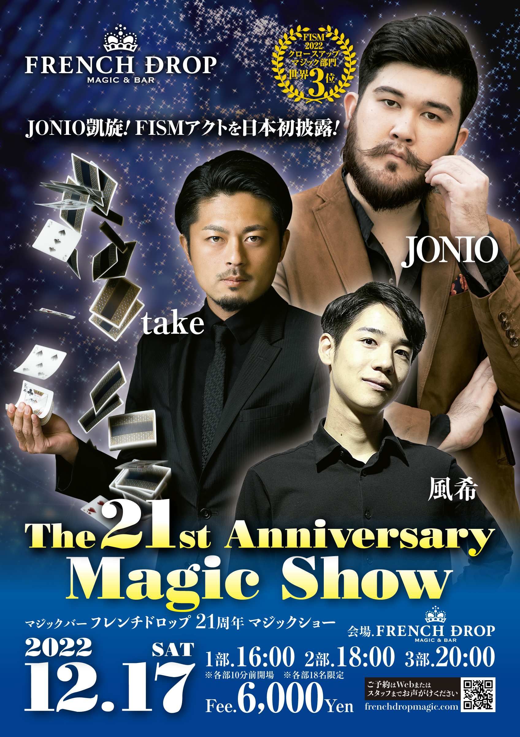 大阪・谷町9丁目に構えるマジックバー フレンチドロップは21周年をむかえ、2022年12月17日(土)に21周年記念イベントとして「The21st Anniversary Magic Show」を行います。