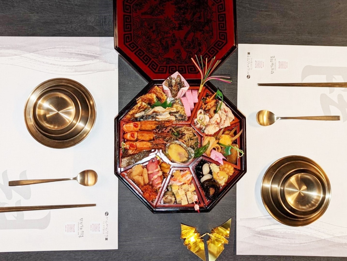 当店は、京野菜や京都ぽーく、丹波地どりなど京都産の食材にこだわり、日本と韓国を融合させた料理を提供しています。今年2月の節分には、恵方巻とキンパをコラボした「恵方巻きんぱ」を販売。今回、日本の伝統行事と韓国グルメのコラボ第2弾となる「京×韓 祇園韓国おせち『麗』」を企画しました。