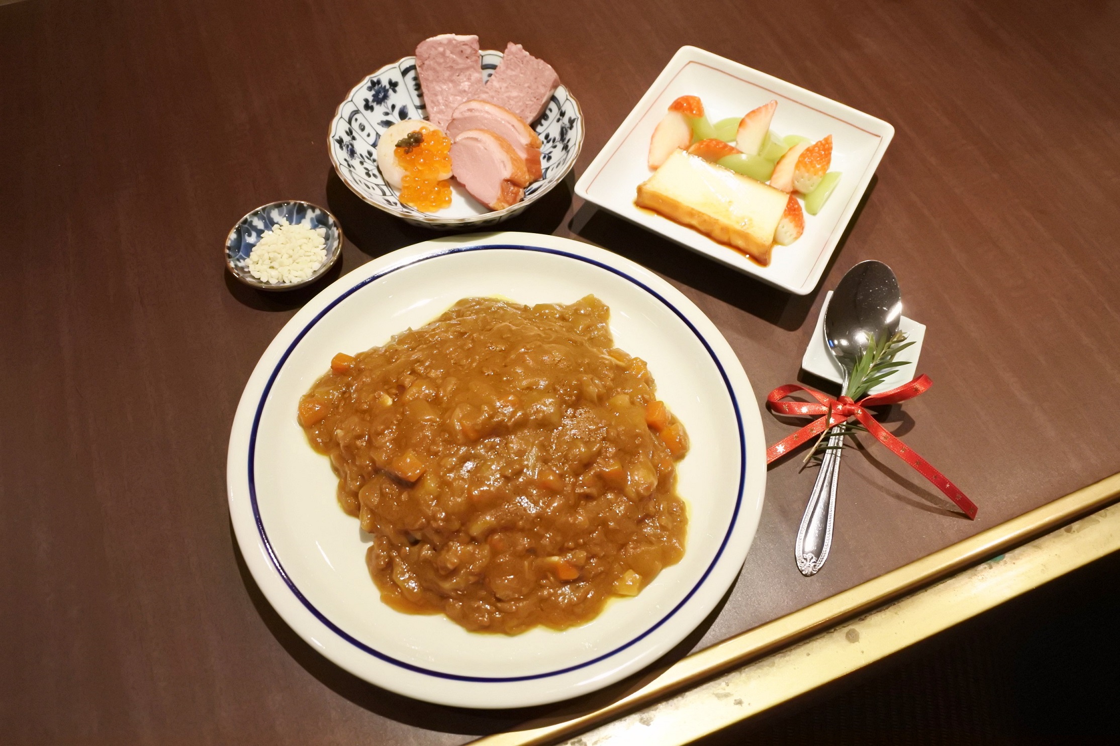 「食祭テラスのクリスマスマーケット」では、玉鬘の店舗以外で初めて手作りの「特製バターカレー」(1,401円)をご提供します。別添えのアーモンドクラッシュをかけて食べていただくのもおすすめです。鴨ロース燻製やパテ・ド・カンパーニュ、炙りホタテのイクラとキャビア載せの前菜、特製バターカレー、梅田の純喫茶「サンシャイン」特製のプリンとイチゴ、シャインマスカットのデザートが付いた「特製バターカレーごほうびセット」(3,901円)もご用意。希少な地酒、「山崎」「白州」「響」など入手困難なウイスキーもご提供します。物販のレトルトカレーは、「北新地 玉鬘名物 バターカレー」(1,080円)のほか、準子ママの還暦と玉鬘開店35周年を記念して新発売する「玉鬘 松阪牛100% カレー」(2,501円)をそろえています。
