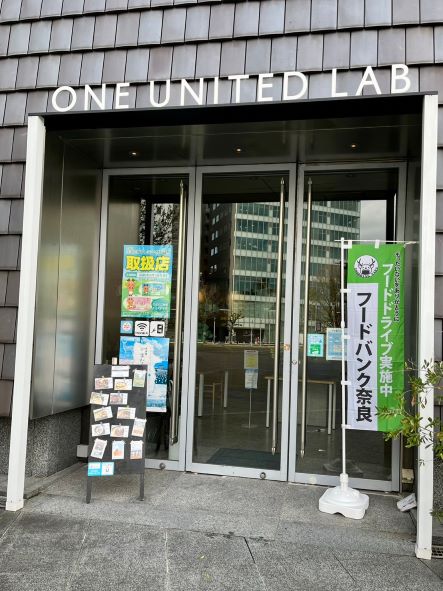 なら100年会館1階併設、「人・地域・自然」がつながる空間をもって「人と人とのコミュニケーションの場」を創造することをコンセプトにオープンしたONE UNITED LAB(運営会社:株式会社ミライトリンク、住所:奈良県奈良市、代表取締役:中本和昭)は、2022年11月11日(金)特定非営利活動法人フードバンク奈良よりフードドライブ拠点地として活動することを承認されました。定休日(火・水曜日)を除く毎営業日、食品をお預かりいたします。
