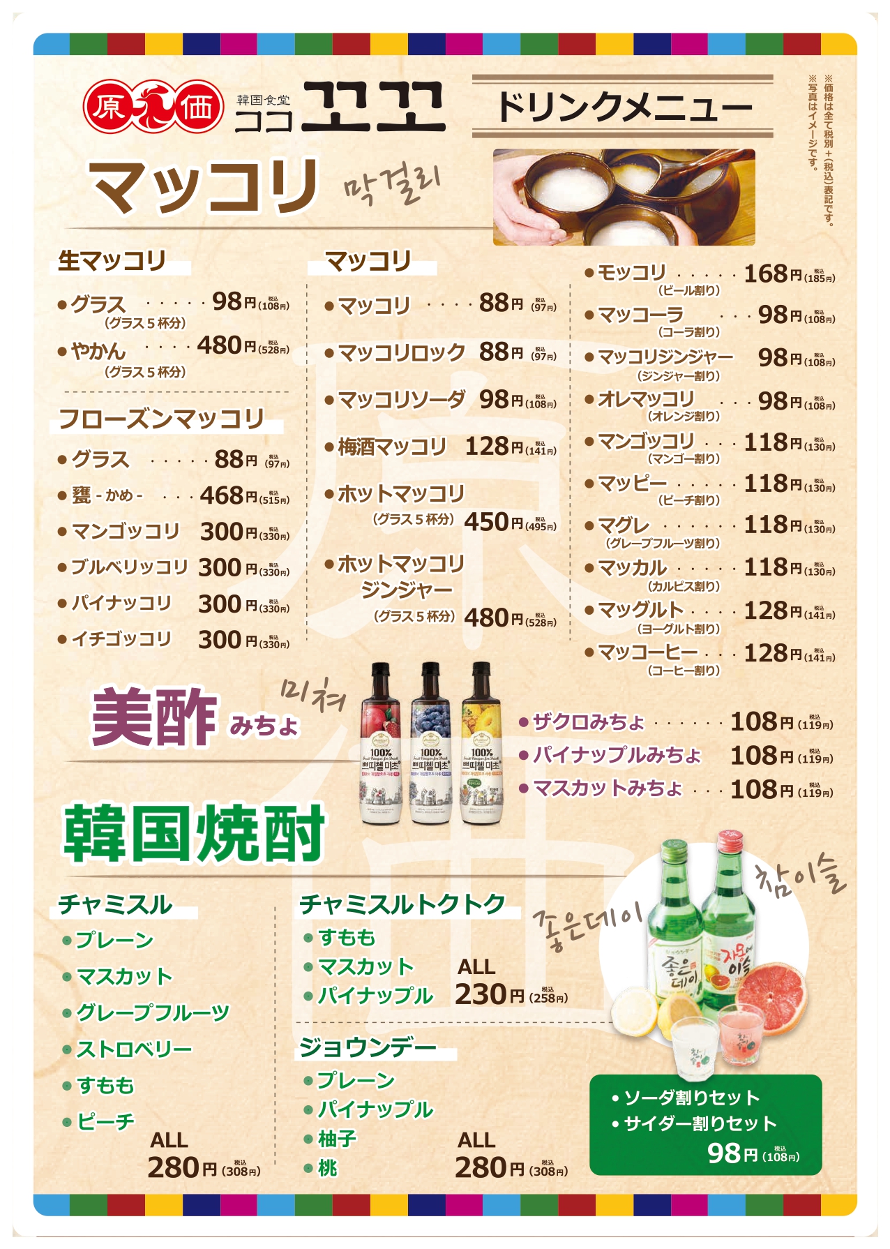 梅酒マッコリ・マッコーヒー(コーヒー割り)各141円 など