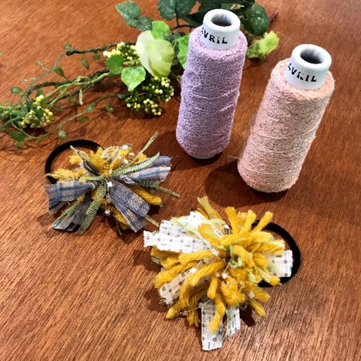 ①カラフルアブリルの糸でつくるアクセサリー(タッセルアクセサリー・ポンポンヘアゴムの2種類)