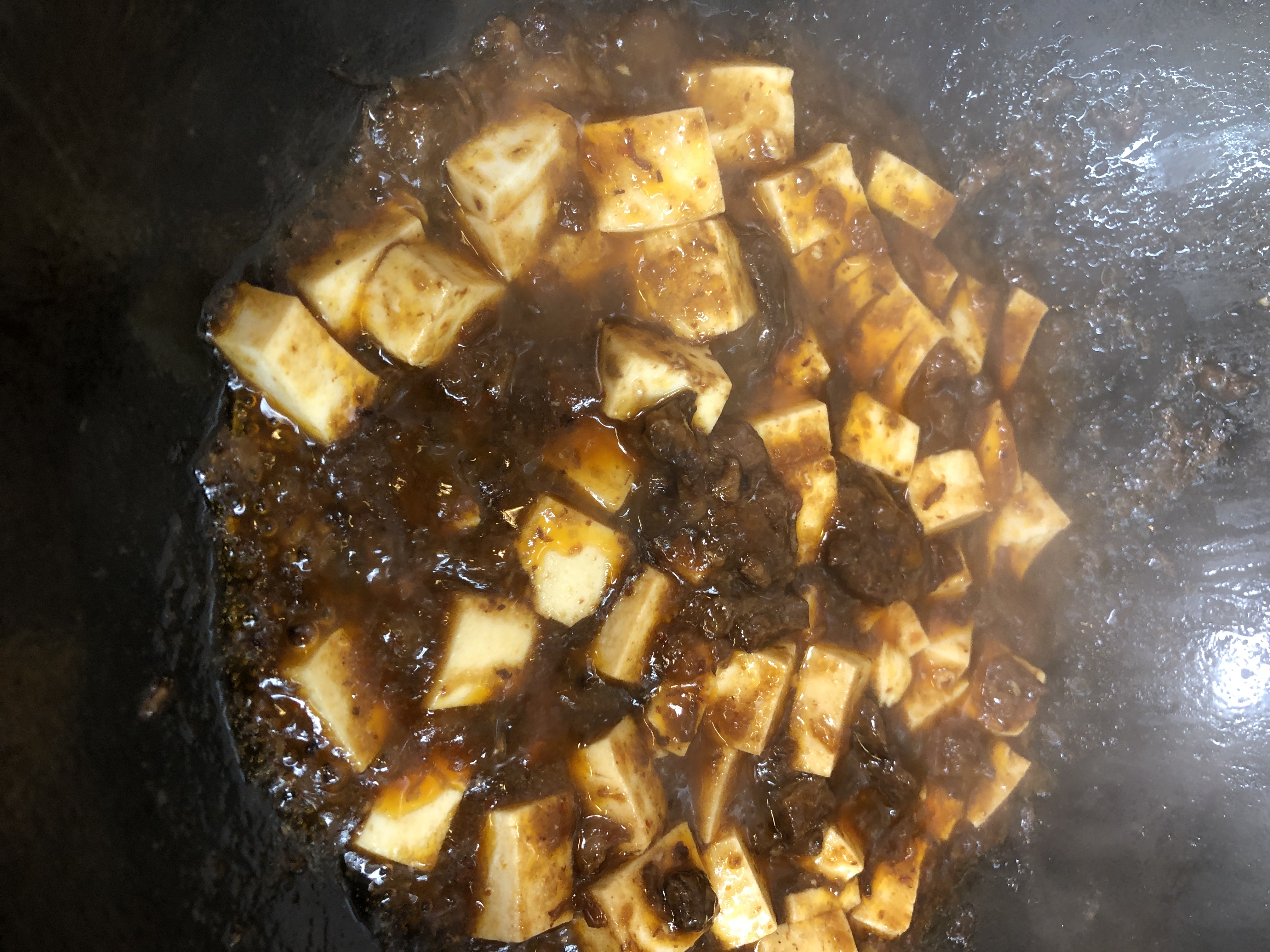 四川省産の三年熟成の豆板醤などを独自の配合した豆板醬を使い、自家製辣油の製造過程で漉してできた産物の唐辛子粉で辛みをプラスして独自のオリジナリティーを出しています。