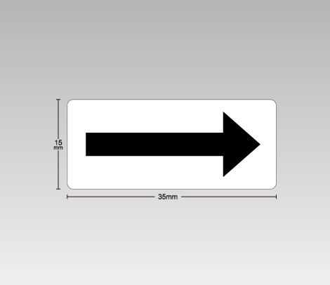 便利シール屋さん 印刷例【矢印シール(識別方向表示シール)】各種部品・資材などの方向を表示する矢印シール。屋外でも使用できる丈夫な合成紙で作成します。また、オリジナルサイズやシリアルナンバー入りにも対応します。