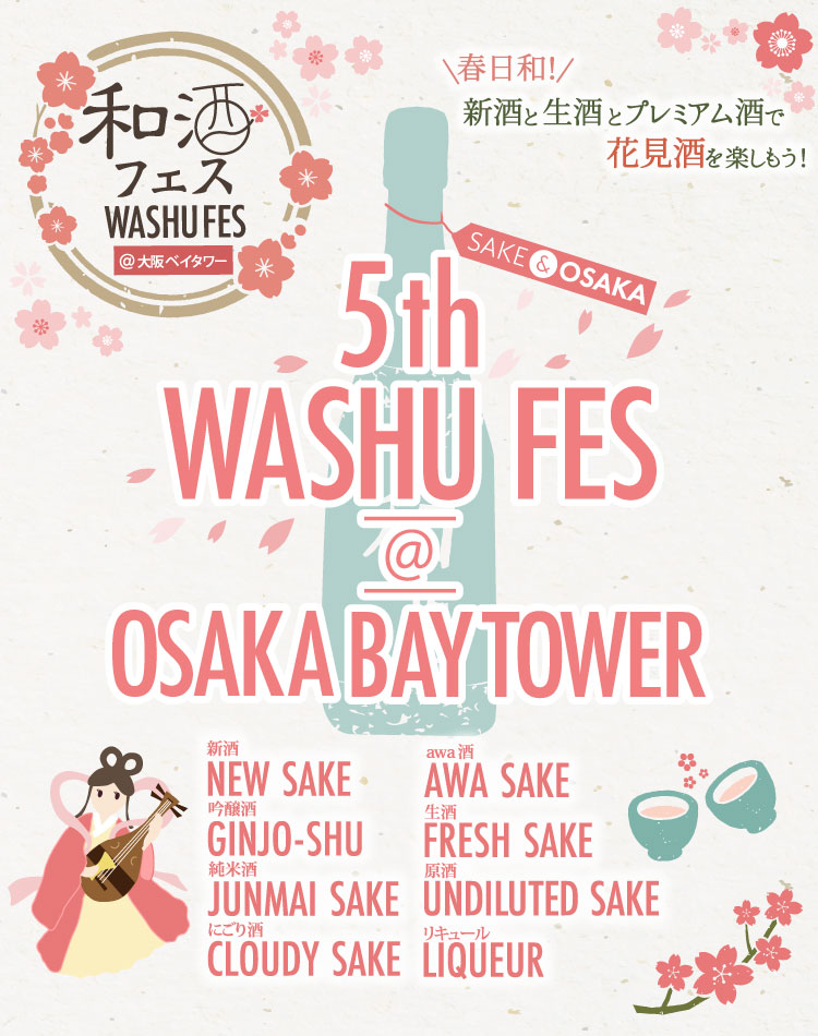 今回のイベントテーマは、「春日和!新酒と生酒とプレミアム酒で、花見酒を楽しもう!」です。全国各地から28蔵、130種類以上の和酒が集まります。出展蔵は国内外の鑑評会・品評会などで受賞歴をもつ『米鶴』『六歌仙』『徳正宗』『君の井』『華燭』『白川郷』『葵天下』『臥龍梅』『四海王』『式』『唯々』『龍力』『梅乃宿』『歓喜光』『長龍』『七冠馬』『五橋』『山猿』『花雪』『泰斗』、和酒フェス大阪は初出展の『今代司』『白馬錦』『千曲錦』『作』『富翁』『神鷹』『鳳鳴』『車坂』です。