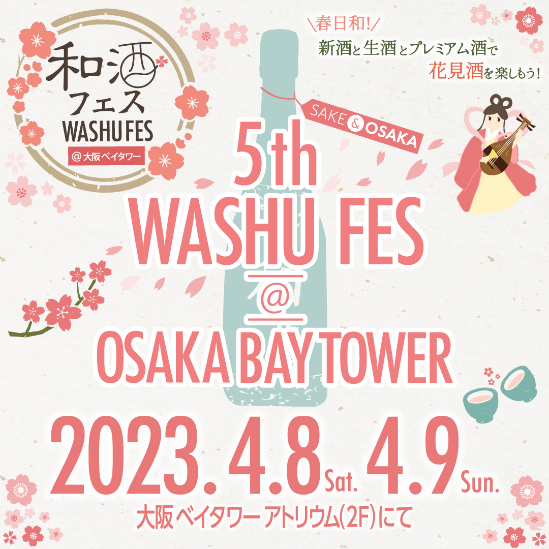 地方創生を応援する和酒フェス大阪実行委員会は、「第5回和酒フェス@大阪ベイタワー」を大阪環状線と大阪メトロ中央線の弁天町駅に直結する大阪ベイタワー・アトリウム(大阪市港区)で、4月8日(土)と9日(日)に、第1部は12時00分から14時10分、第2部は15時00分から17時10分の時間に開催いたします。会場は風通しがよく、光を通す屋根のある大屋根広場です。昨年の開催では、お客様アンケートの満足度平均が96%と高く、多くの皆様に応援いただいております。