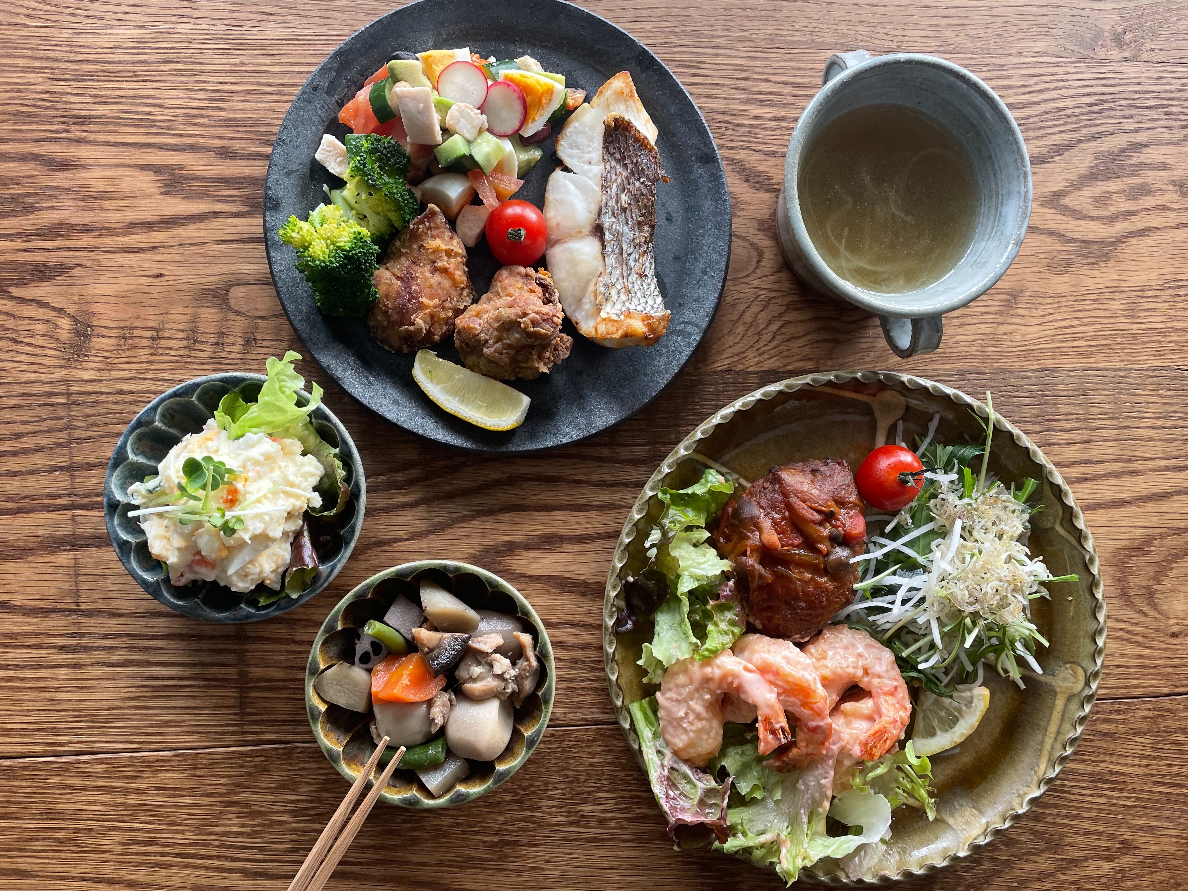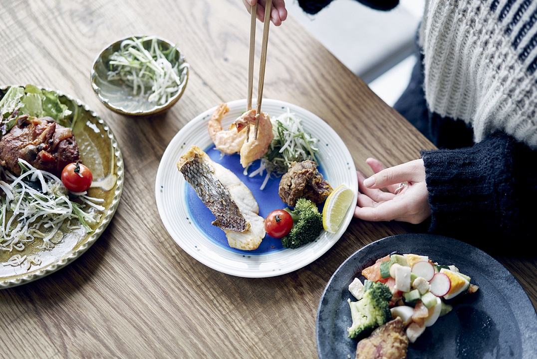 淡路島産の食材を使ったお惣菜やスイーツを常時約15種類販売。地域住民の毎日の食を彩ります。施設2階には、テラス席を含めたイートインスペースを設置し、地元・淡路島の陶芸家による器を使用して色んな盛り付けを楽しんでいただけます。また、好きなお惣菜3種類を選べる「島デリBOX」も販売します。