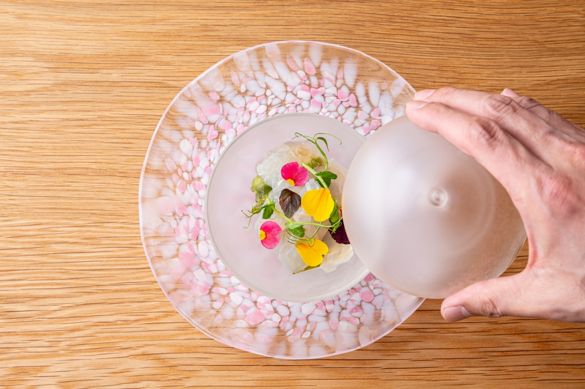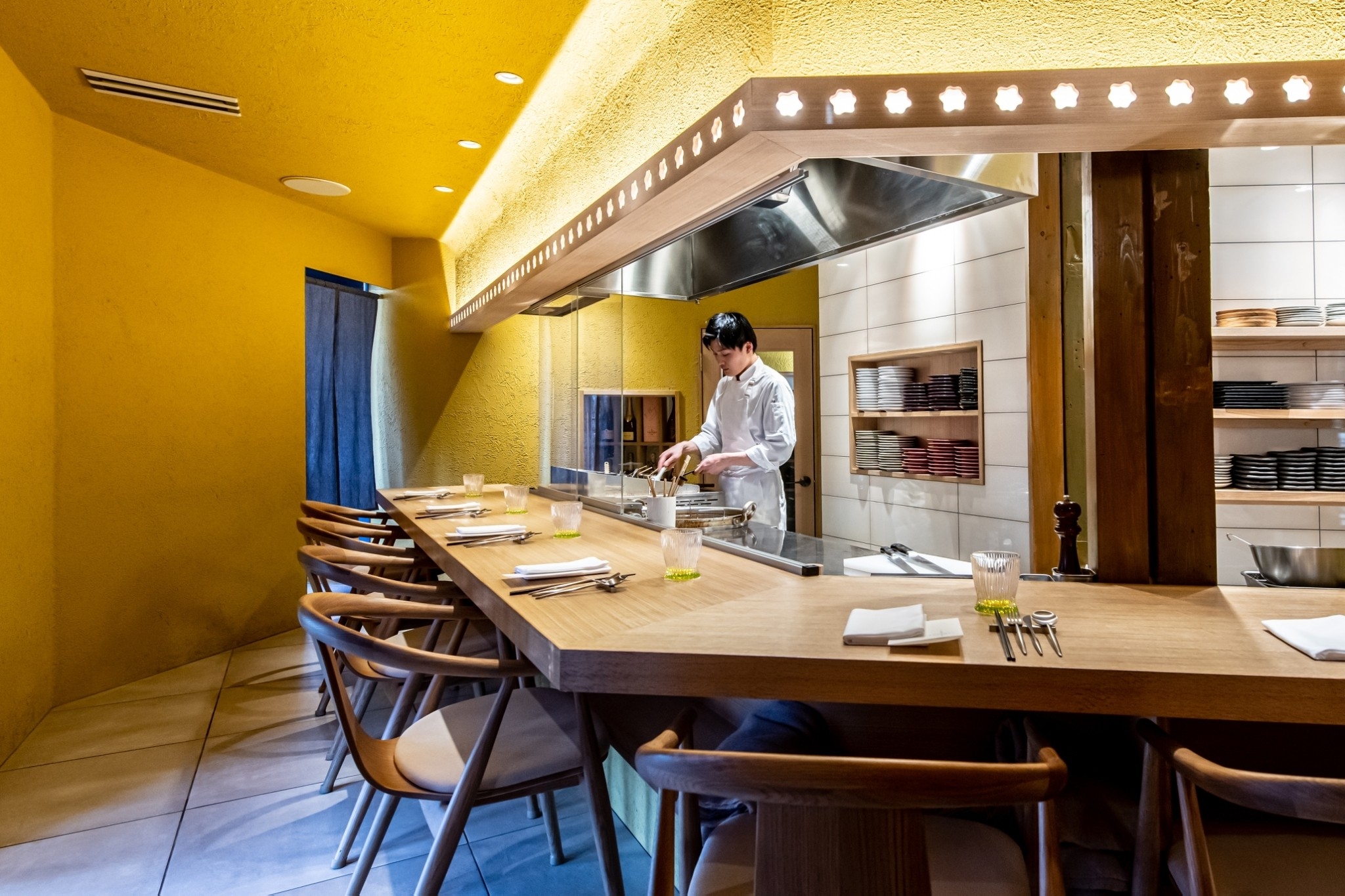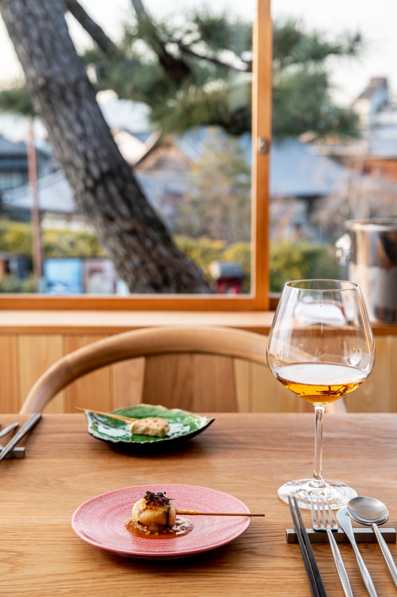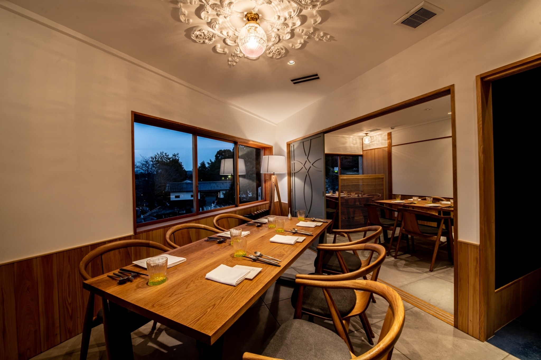 1階のカウンター席は、シェフが目の前で調理する様子を見ることができ、”ライブ感”が魅力。2階のテーブル席・個室からは、四季を通じて様々な表情を見せる高台寺界隈の景色をご堪能いただけます。