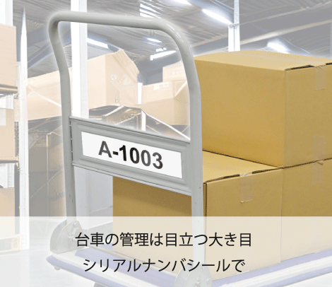 ナンバリング屋さん【台車管理用大型シリアルナンバーシール印刷】販売開始。物流倉庫や工場などでたくさんの台車を管理するときにわかりやすい大きいシリアルナンバーシール