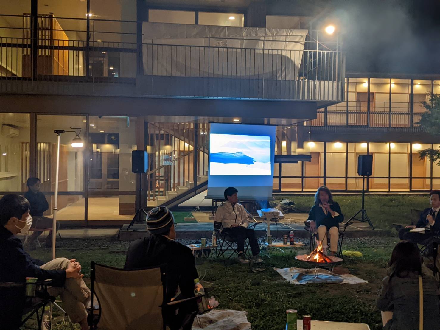 たき火を囲みながら、ゲストのお話を聞きます。