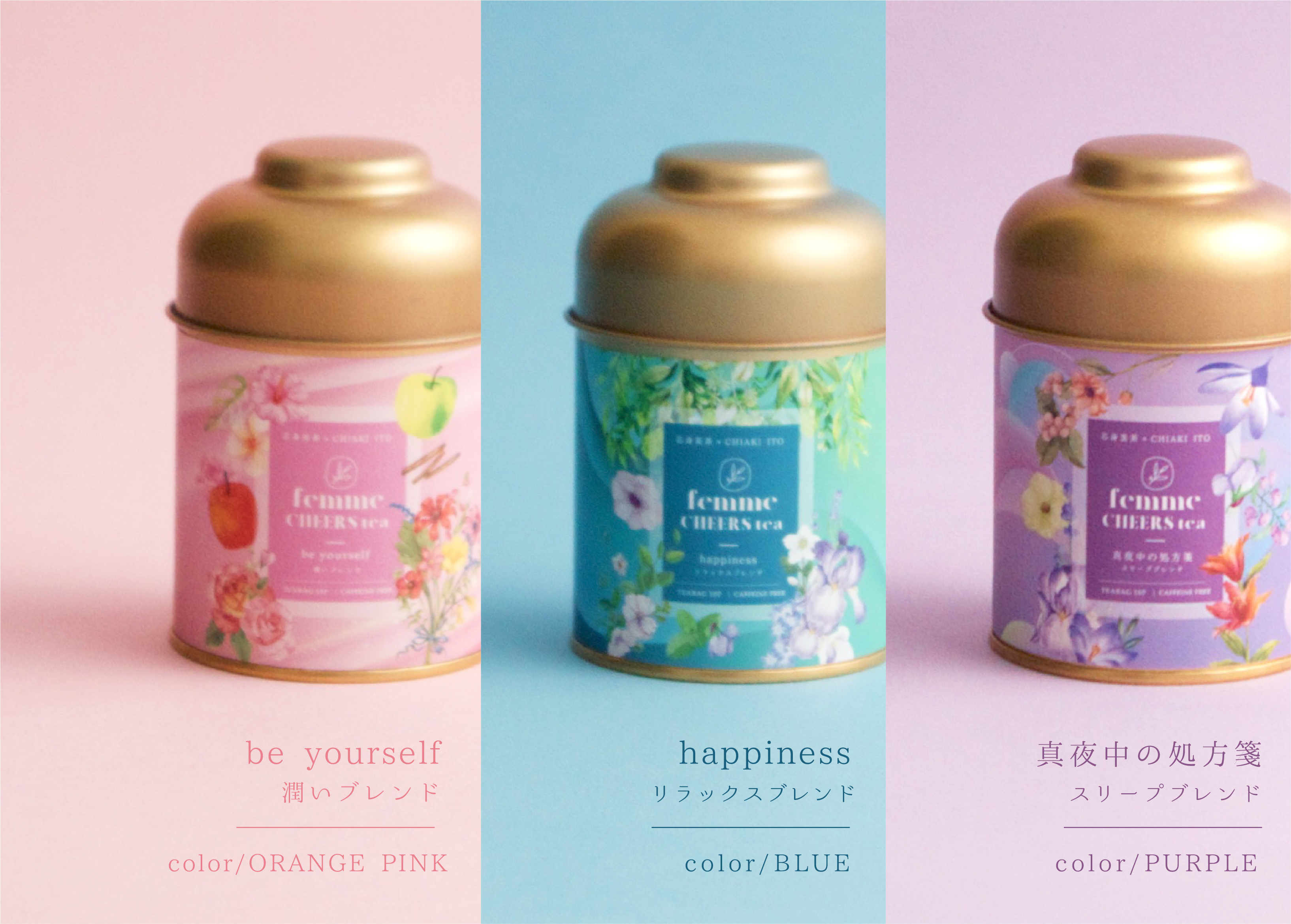 芯身美茶×伊藤千晃で新展開する「femme CHEERS tea」(フェム・チアーズ・ティー)の名前の由来は女性(femme)を応援(cheers)するお茶ということで名前をつけました。
