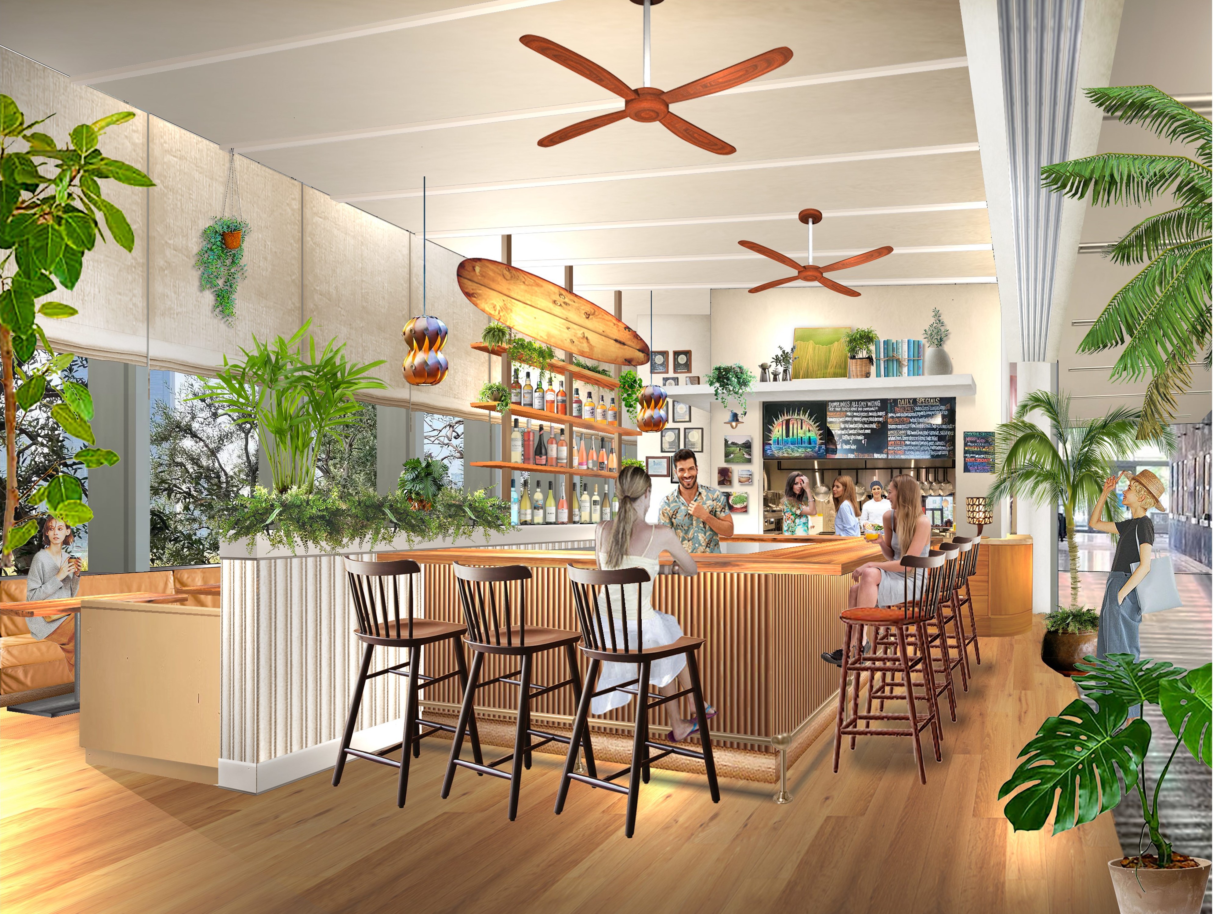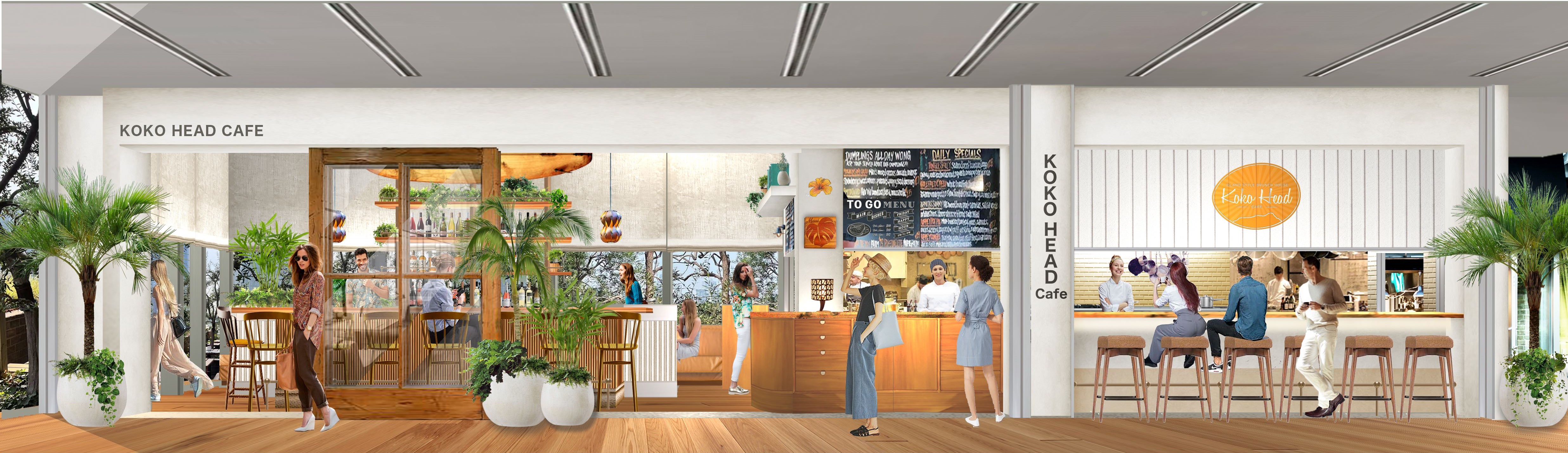今回オープンするKoko Head cafeでは、現地の看板メニューをはじめ多数のメニューをそろえ、ブランチやランチ、ププ(おつまみ)スタイルでご提供します。リー・アンがハワイアンフードやアジア料理をアレンジしたオリジナルメニュー「コーンフレークフレンチトースト」 「ココモコ」「ブレックファーストブルスケッタ」「ダンプリング(餃子)」などをそろえ、東京にいながらハワイの味をご堪能いただけます。サーフボードや植物を飾った開放感のある空間でゆったりと食事を楽しんでいただくイートインのほか、テイクアウトでもご利用いただけます。