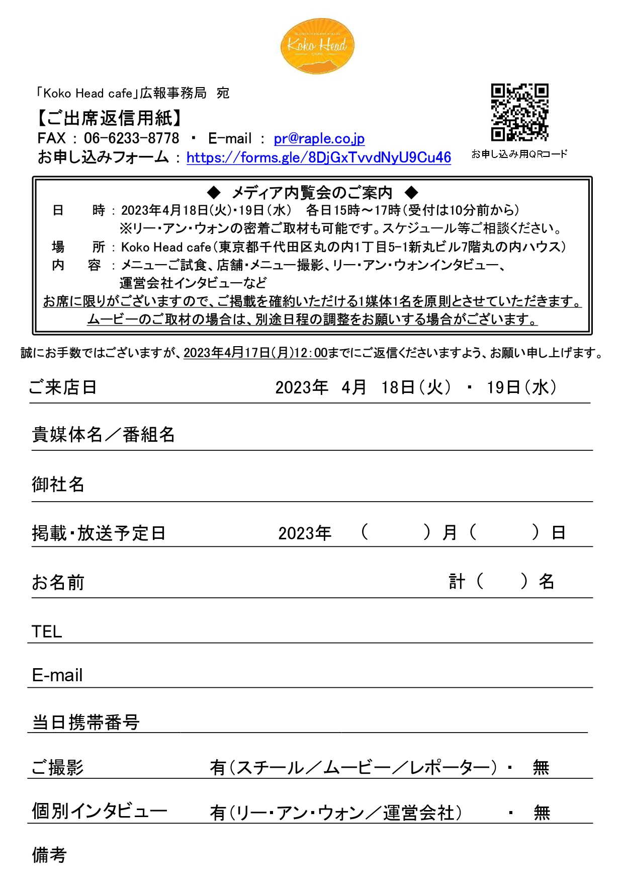 「Koko Head cafe」広報事務局