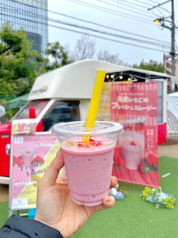 季節ごとの国産フルーツや野菜の味を生かした商品を開発し、10種類以上の商品を販売に繋げることができました。1番の人気メニューである『国産いちごスムージー』は、1年を通していちご栽培をしている農家さんから仕入れさせていただき、「お客様が笑顔になるものを届けたい」「提携先の農家さんのことを知って味わってもらうきっかけに」という想いで実現しています。