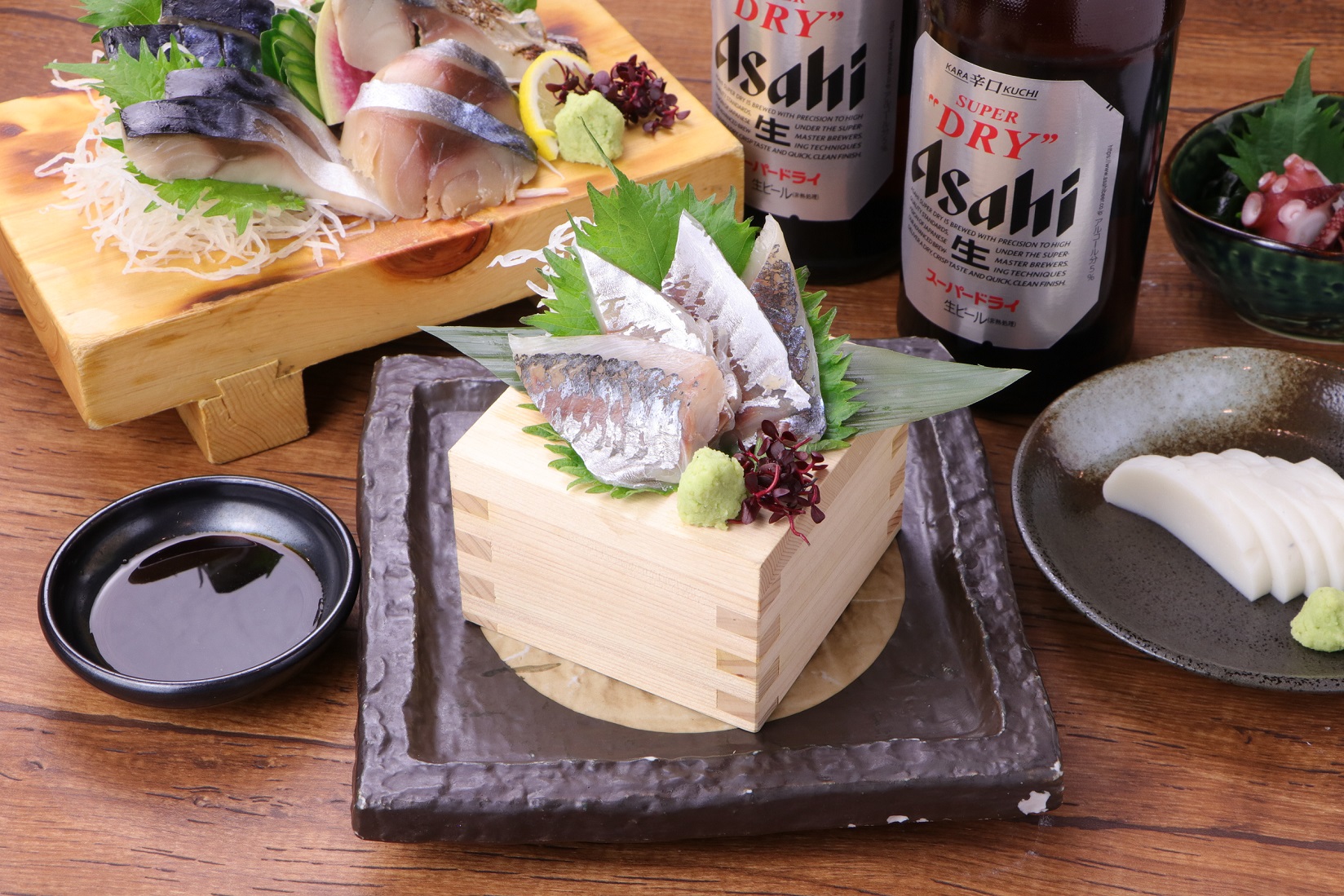 ・まぐろやあじのお刺身 380円~ ・あさりの酒蒸し 450円 ・タコの唐揚げ 480円