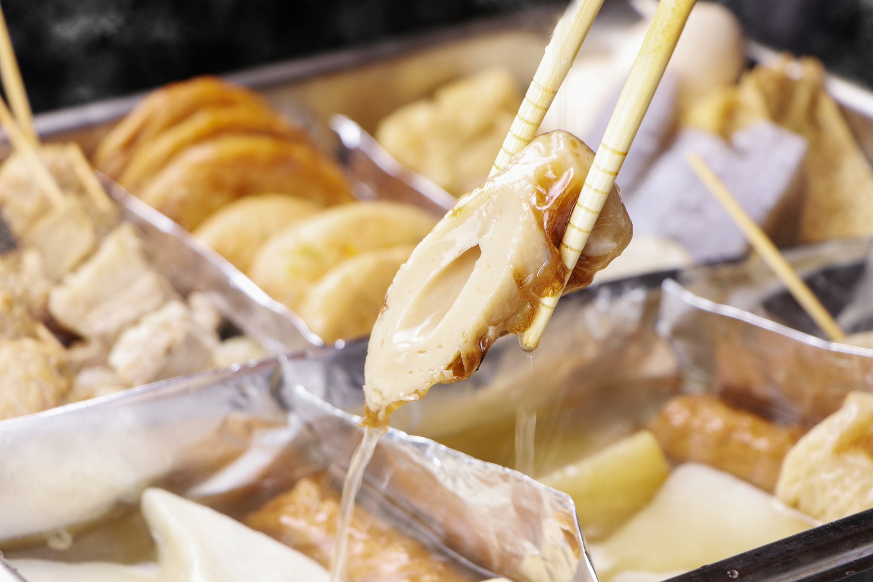 大根、さばつくね、たまご、こんにゃく、牛すじなど12種類(180円~)