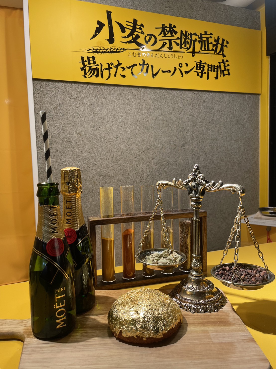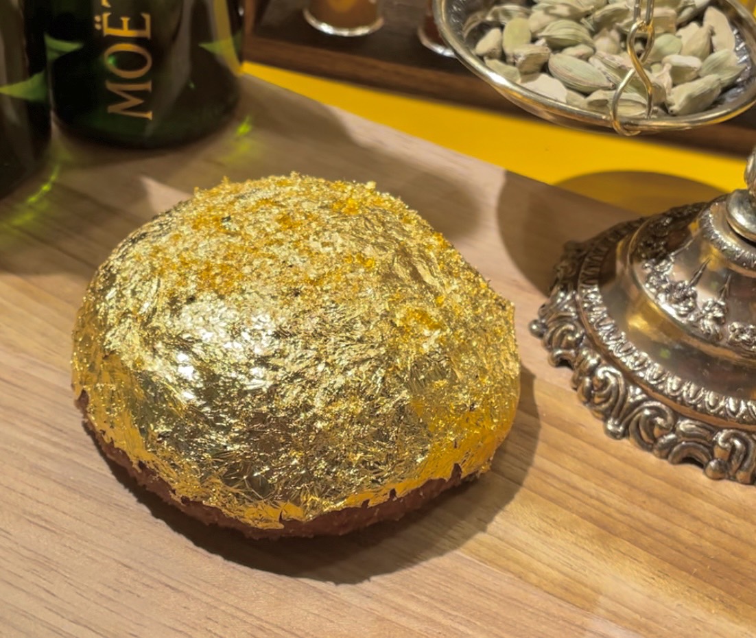 食を通して日本を盛り上げたい!活気付けたい!という想いから金箔を贅沢に全面にあしらった禁断の金色カレーパンもオープンに合わせて発表!カレーパンは日本発祥で起源は諸説では1927年とされています。昨今のIRや万博の未来がある国内でインバウンド、世界に向けた話題のカレーパンを届けたい!という気持ちから今回金箔を贅沢に全面に纏った豪華な『禁断の金色カレーパン』を発表!価格は1個¥8,000(税込み)ミニボトルのシャンパンをセットにした『セレブの金色カレーパンセット』¥10,000(税込み)もご用意しました。