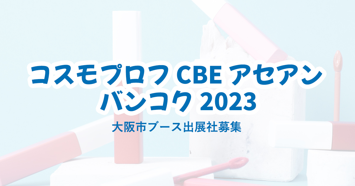 この度、大阪市は、大阪市のビジネスパートナー都市(BPC)の一つであるタイ・バンコクにて開催される「コスモプロフ CBE アセアン・バンコク2023」に大阪市ブースを出展します。在阪中小企業の海外販路開拓支援のため、出展料の半額補助、無料通訳サービス、海外展開サポーターによる特別支援が受けられる特別出展スキームでのご案内です。
