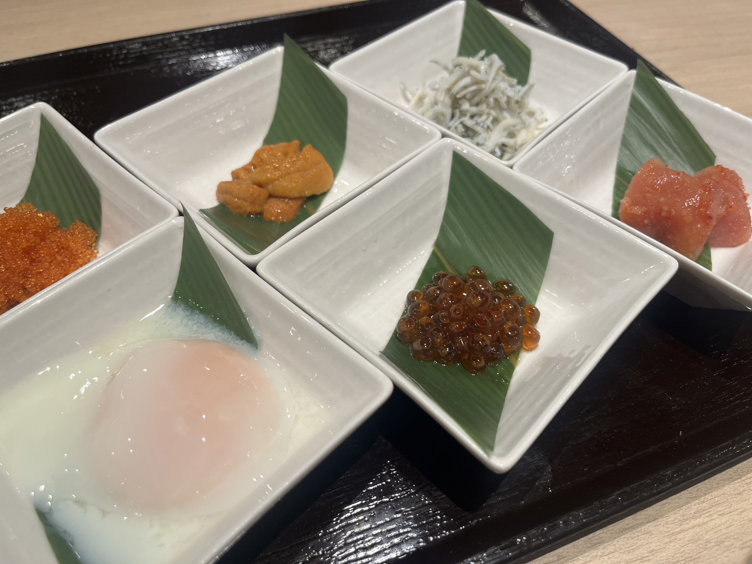 特 典:トッピング(ウニ、イクラ、釜揚げしらす、辛子明太子など)が最大3つまで無料