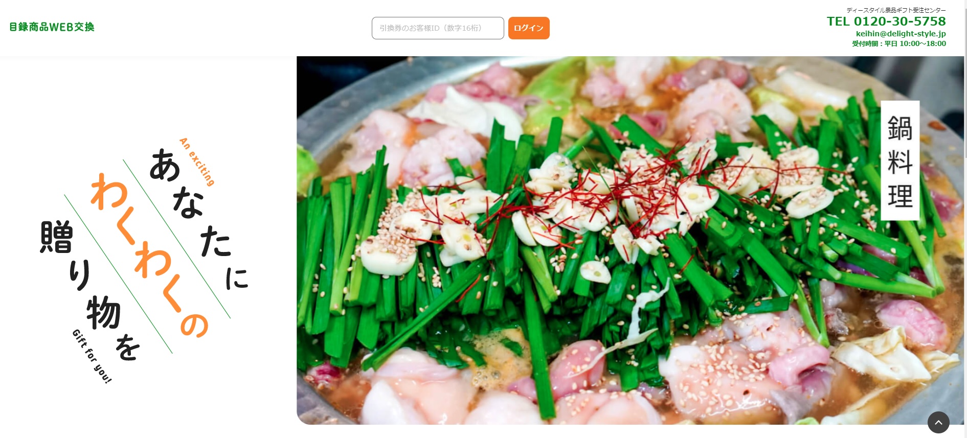 「目録商品WEB交換」とは、商品の注文から引換までオンラインで手続き可能な商品交換サービスです。遠方にお住まいの方へのギフトにも利用することが可能です。