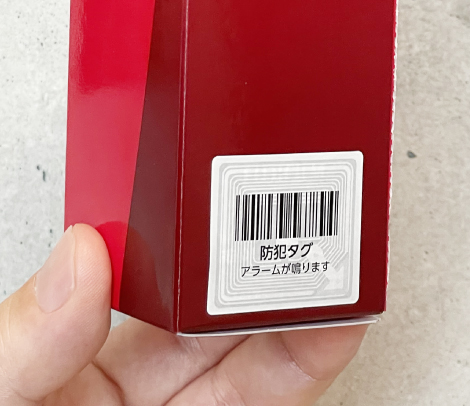 主に小売店の商品に直接貼り付けられる、盗難・万引きを防止するためのシールです。