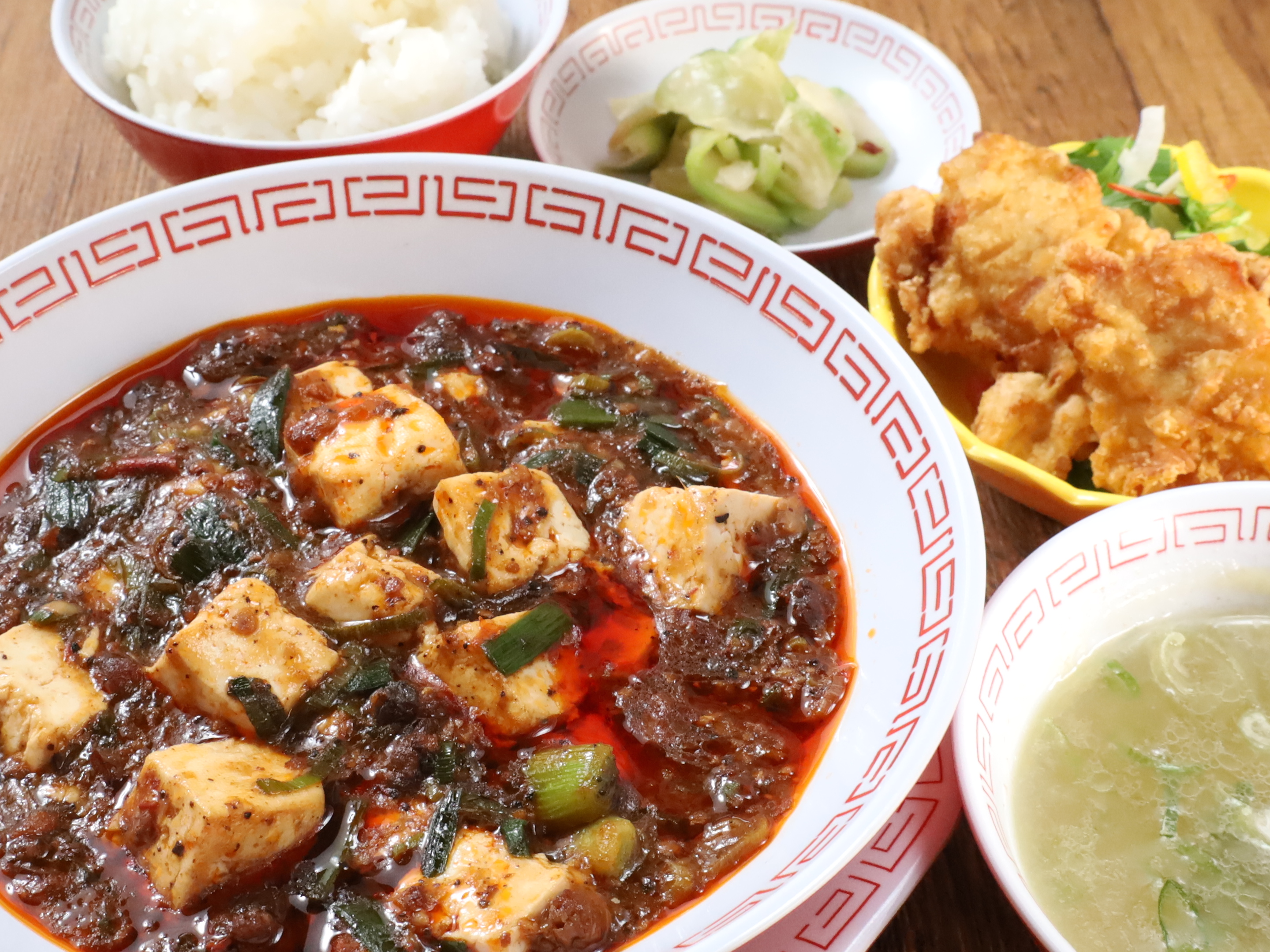 (炒飯・唐揚げ2個・餃子6個・焼売2個・スープ・ザーサイ) 1,848円 など