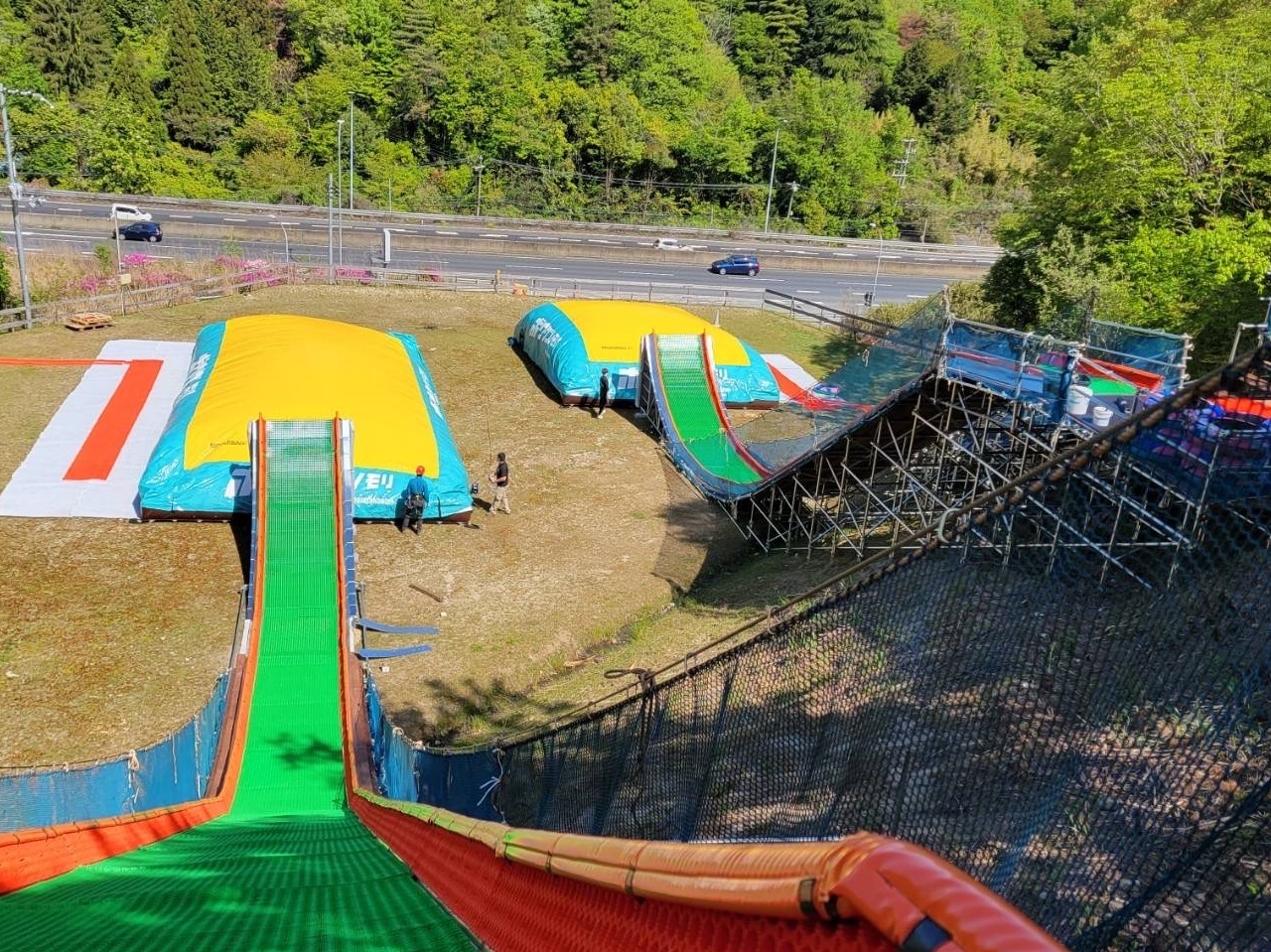 株式会社冒険の森(本社:大阪府豊能郡能勢町、代表取締役:伴戸 忠三郎)は、奈良県山辺郡山添村のアスレチック施設「ボウケンノモリ ヤマゾエ店」内に7月15日(土)、西日本初(※当社調べ)の山の斜面を利用したスライド&ジャンプ遊具「メイハンダイブ」をグランドオープンします。夏休み企画として、飛び上がる直前に簡単な算数の問題(四則計算)をスタッフが掲げ、正解者には極冷えテントで涼む権利やドリンクをプレゼントします。