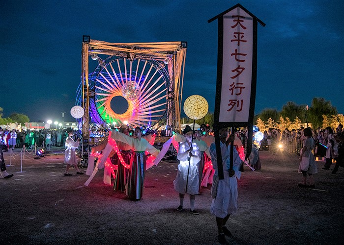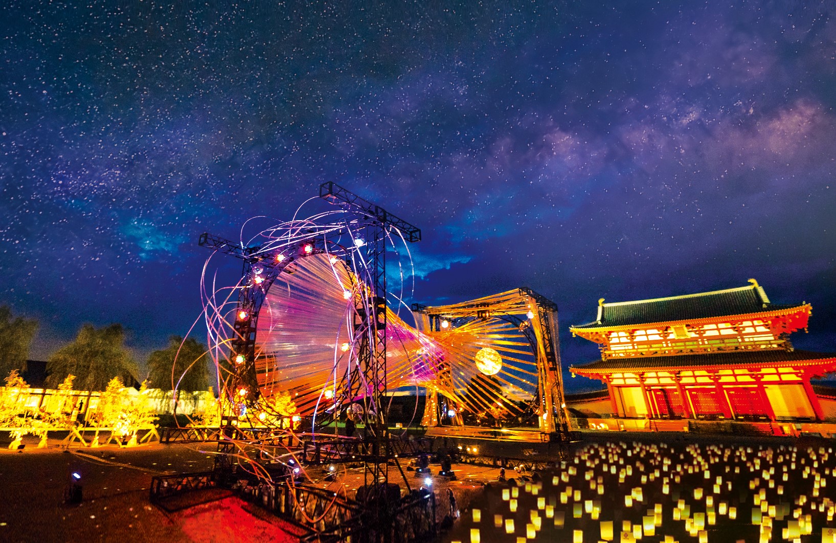 「古都奈良の文化財」として世界遺産に登録されている平城宮跡で行われる「平城京天平祭」。春・夏・秋の季節毎に魅力的なイベントを実施しています。今年の夏は、8月18日(金)~20日(日)までの3日間、『天平たなばた祭り~平城京天平祭・夏~』と題して、夏の夜の平城宮跡を光と灯りで彩ります。