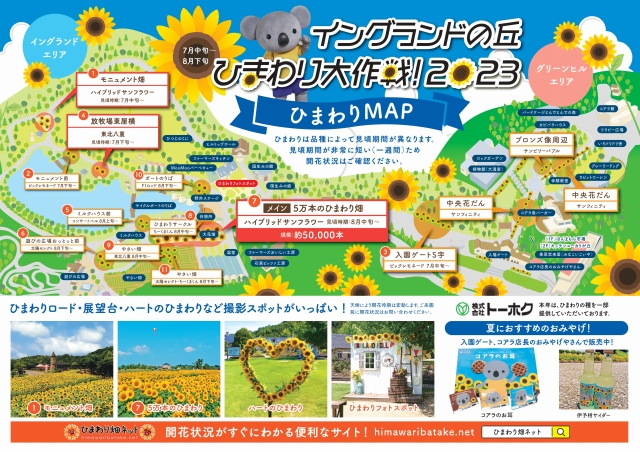 ひまわり大作戦とは、種まき時期をずらし、夏休み期間中いつ来園してもひまわりが見れるように見頃時期を調整しております。また、ハートのひまわりオブジェやブランコベンチなどでも楽しんでもらえるよう、フォトスポットも設置しております。