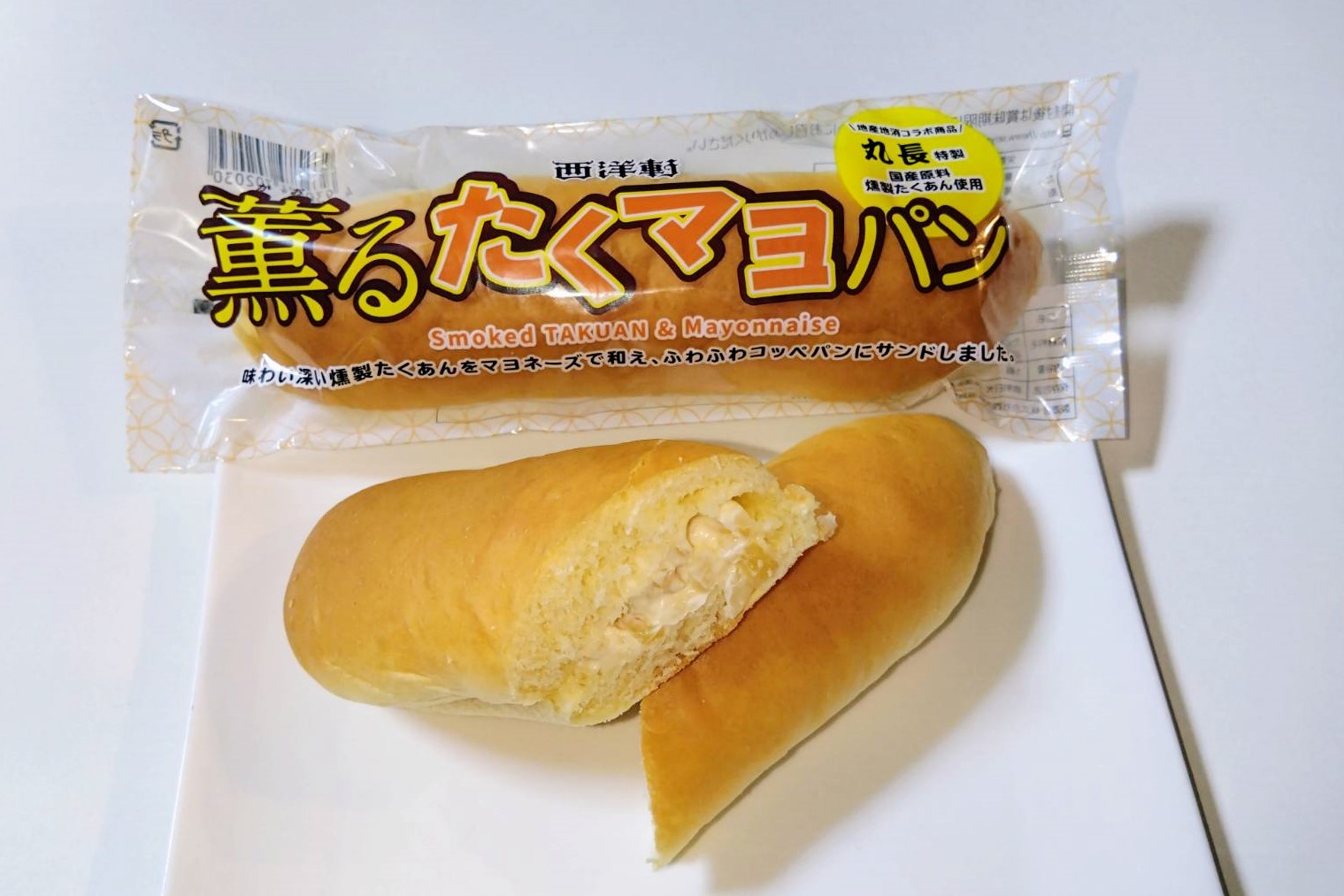 学校給食用コッペパンの味わいを再現し、滋賀で学生時代を過ごした方にとっては懐かしい味を味わっていただけます。「薫るたくマヨパン」は、地元・大津の老舗漬物店「丸長食品」と初めてコラボした商品です。甘みのある柔らかなコッペパンに挟んだ角切りの燻製たくわんのコリコリ食感がアクセントになり、甘じょっぱさがクセになります。当社としては、約40年ぶりの新商品となります。