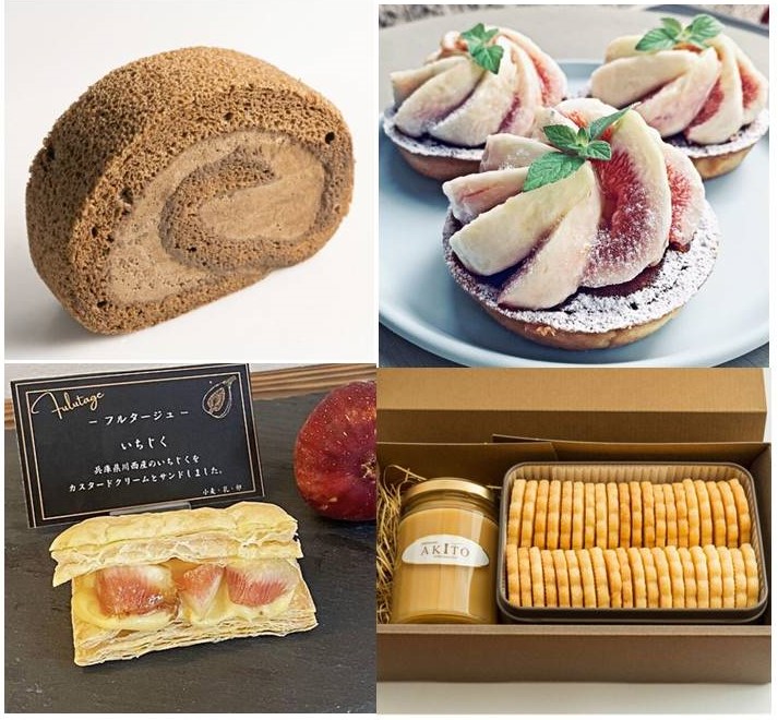 いちじくのタルト、丹波黒豆きなこの焼きドーナツ、淡路島産牛乳のミルクジャム 等
