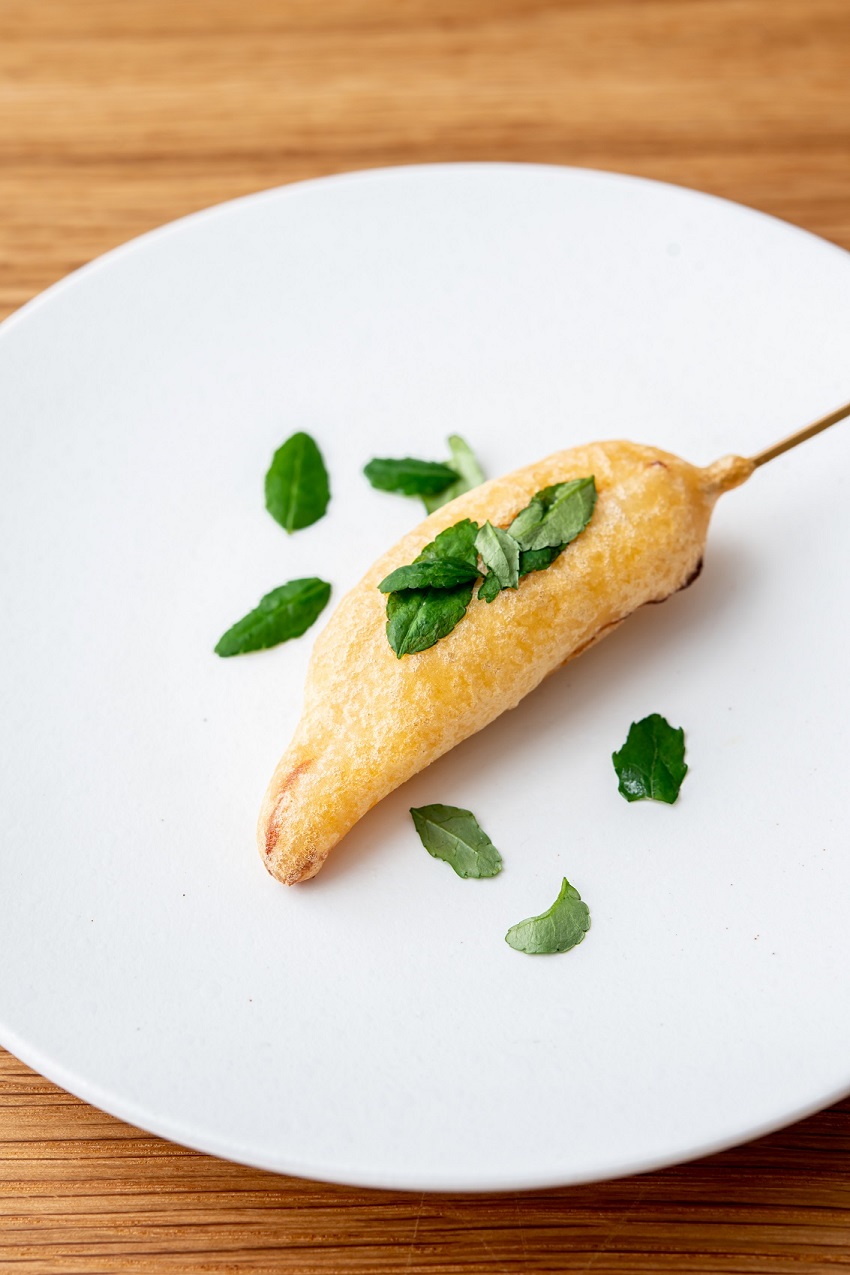 外はカリッと、中はふわっとした衣で包み揚げた串揚げを、「和」の要素を取り入れた新たな“フレンチ串揚げ”としてご提供。