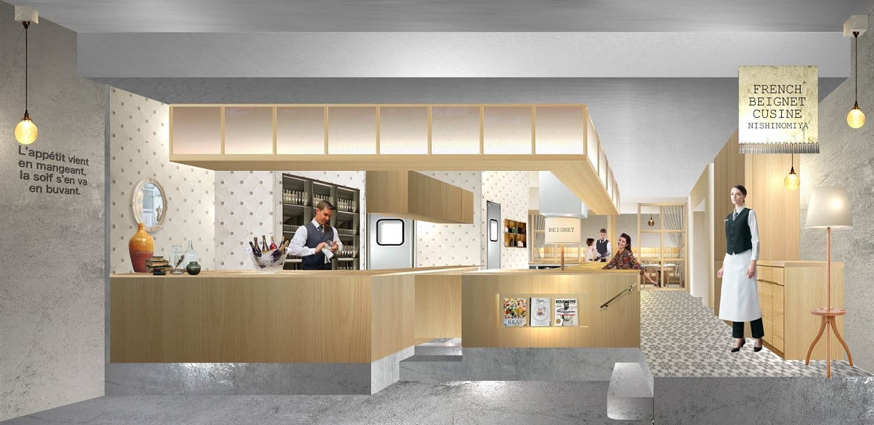「創作串揚 べにゑ」は、阪急西宮駅西側に開業する複合商業施設「阪急西宮ガーデンズ プラス館」1階に出店します。「ベニエ」は2017(平成29)年、日本初の“フレンチ串揚げ”を提供する業態として大阪・梅田に1号店をオープン。フランス料理の技法「ベニエ」を用いて、外はカリッと、中はふっくらな衣で包み揚げた串揚げを、世界各国から厳選したワインとともにコース仕立てで提供しています。今回は、「和」の要素を取り入れた新業態「べにゑ」として出店します。