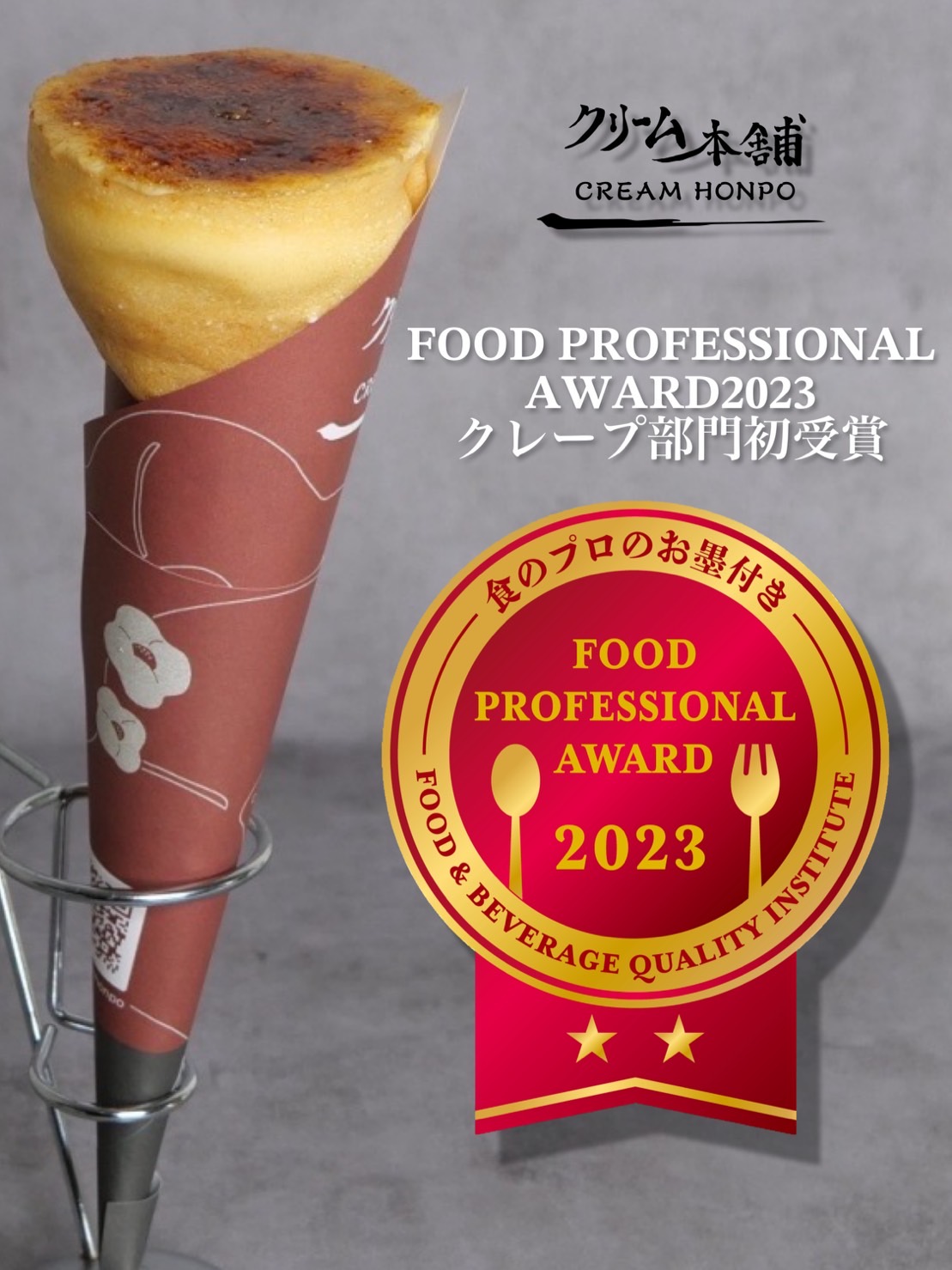 株式会社CREAM HONPO(本社:大阪府堺市、代表取締役社長:吉野 繁)が運営するスイーツ専門店「クリーム本舗」の「クリームプリン」と「ブリュレクレープ」、姉妹会社が運営するタルト専門店「TARUTOYA」の「栗のモンブラン」が2023年8月31日(木)、日本の食品品評会「FOOD PROFESSIONAL AWARD 2023」において2つ星(ブリュレクレープ)と1つ星(クリームプリン・栗のモンブラン)をそれぞれ獲得いたしました。