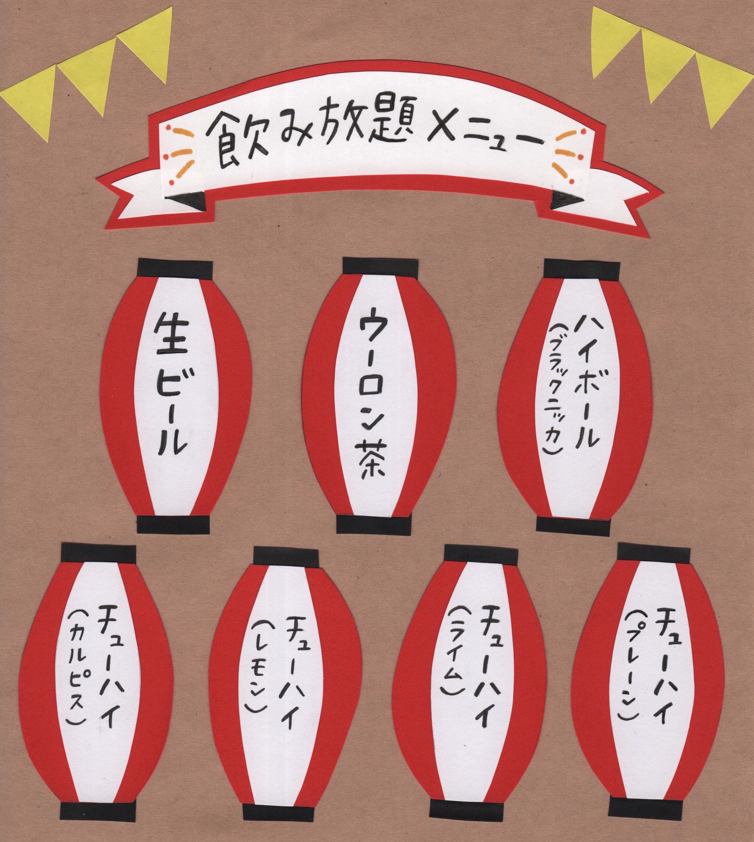 生ビール・チューハイ各種・ハイボール・ウーロン茶の飲み放題を「1名様180円」で提供します。(飲み放題は2時間制になっております)