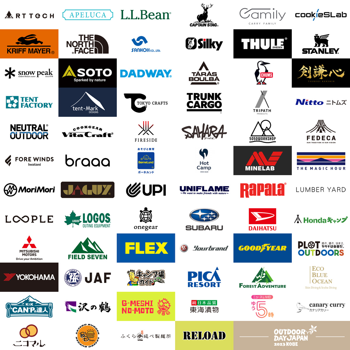 初開催となる神戸会場ですが、東京に次ぐ規模となる約70の企業・団体が出展。人気アウトドアブランドの新製品はもちろん、キャンプ場、クルマなど、キャンプやアウトドアに関連するコンテンツが大集合します。tent-Mark DESIGNS(テンマクデザイン)、THE NORTH FACE(ザ・ノース・フェイス)、CHUMS(チャムス)、LOGOS(ロゴス)、SOTO(ソト)、ユニフレームなど