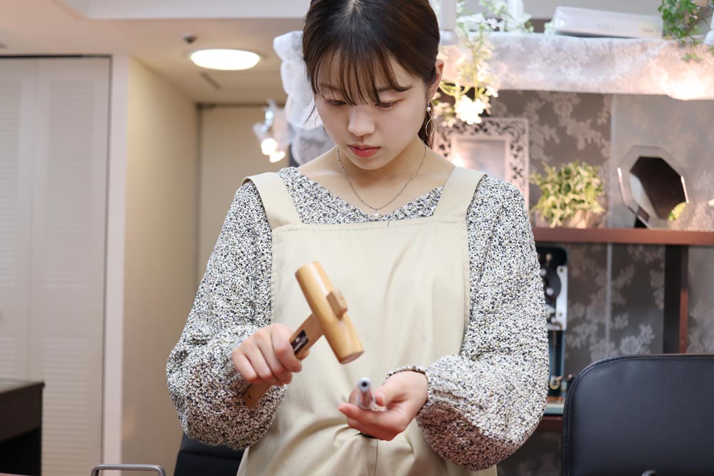多角形の指輪の場合は通常のリングゲージでは正確にサイズを測ることが出来ませんが、MAKIでは独自のシステムによって指輪サイズを正確に測ることが可能です。そのためお試し期間などは必要なく、手作りした当日に持ち帰ることが可能です。