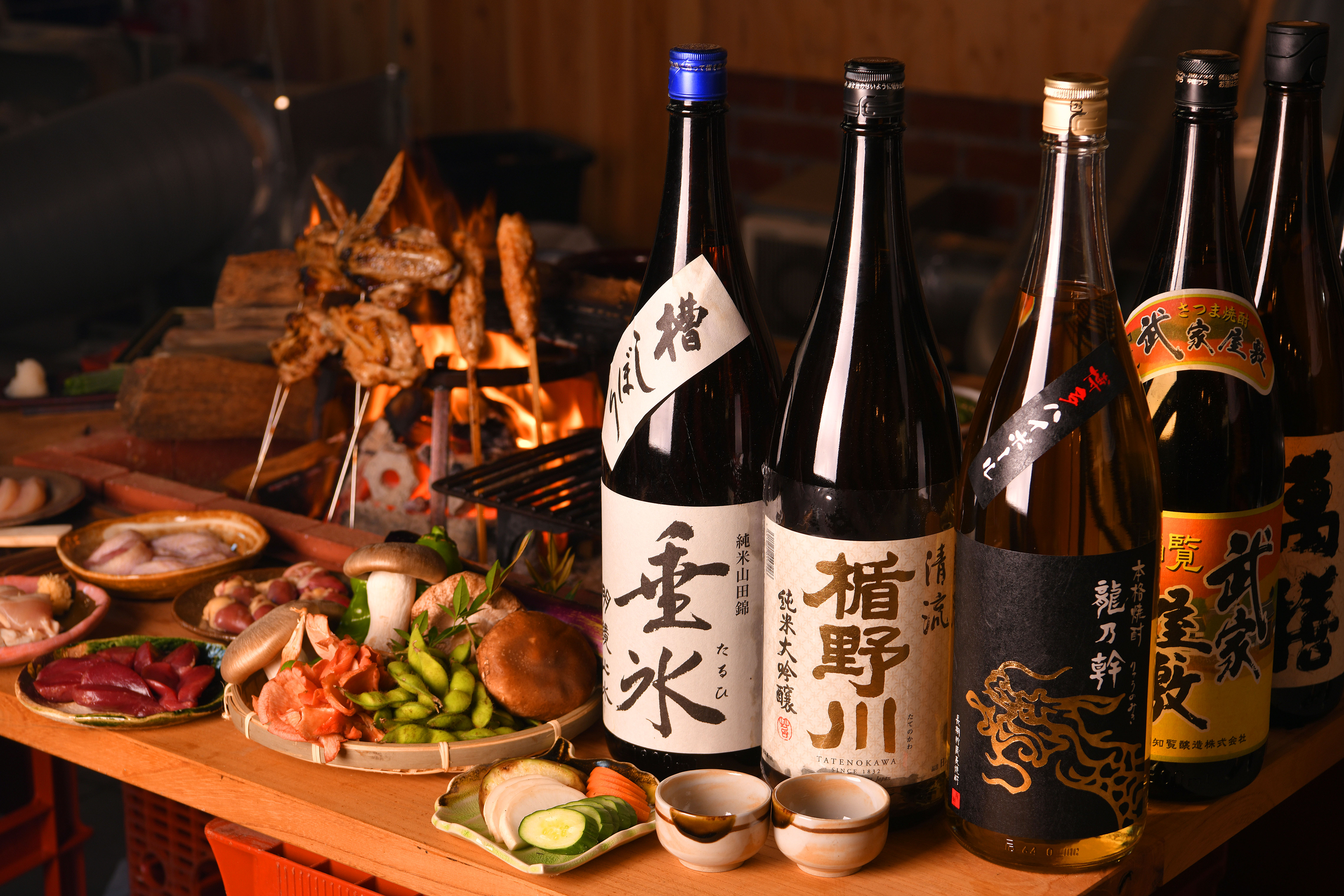 名物は、「薪炙り」、「天草大王の薪タタキ」、「大摩桜の焼きしゃぶ」、「薪の挽肉めし」。中でも、米選びも妥協を許さない熊 脇が選んだのは八代目儀兵の米。このこだわりの米に秘伝の鳥出汁などを使い、土鍋で炊いた「薪の挽肉めし」が究極の〆飯 です。ドリンクには、米麹を使って自社醸造し、すっきりとした味わいで鳥焼を引き立てる「熊フトビール」(クラフト ビール)や、サ ワーには九州各地の個性ある産直果実を合わせたワンランク上のお酒を安価でラインナップ致します。