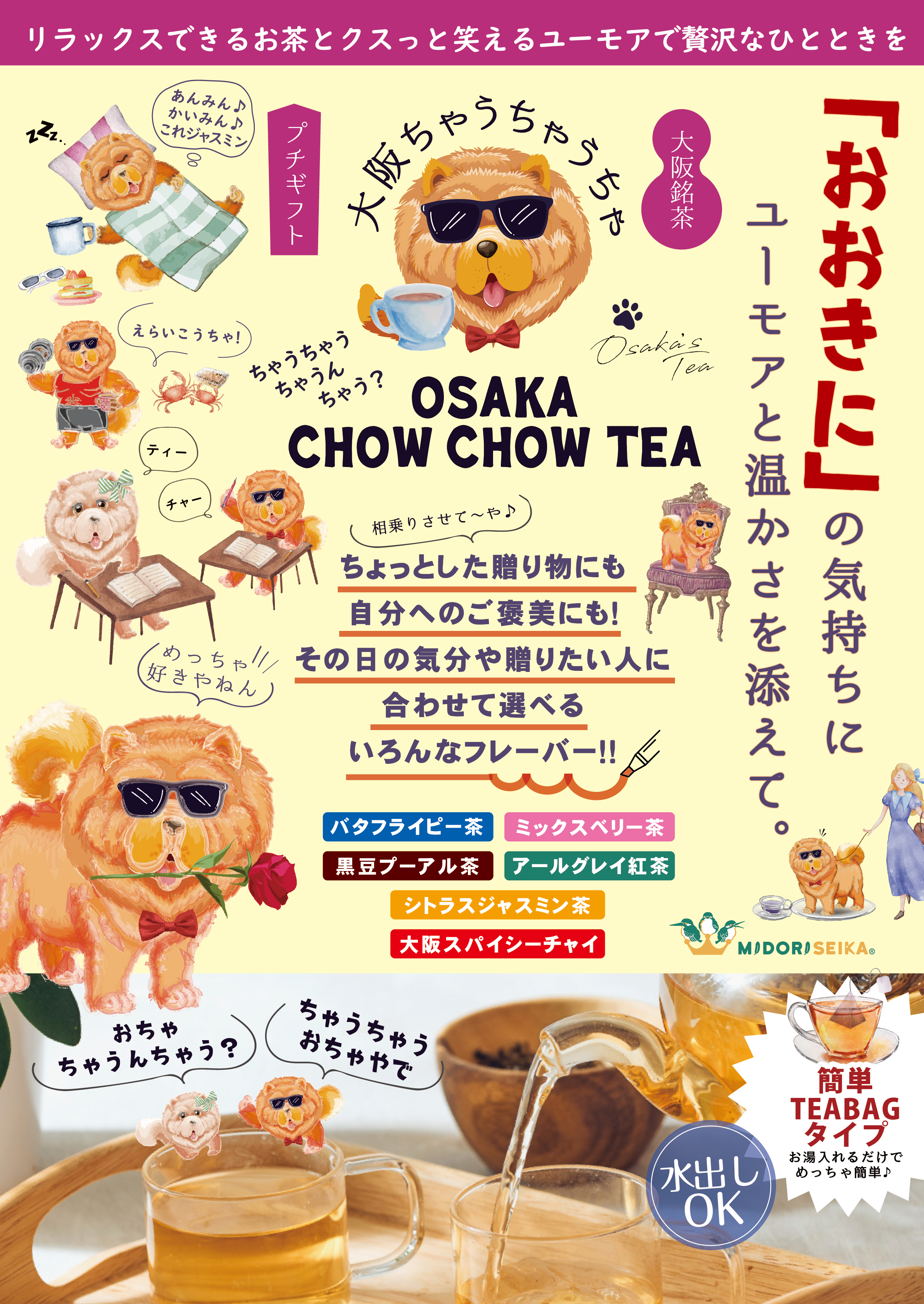 普段よりお菓子に合うお茶を探して飲んでいるという専務取締役の翠大輔氏が「笑顔で感謝や気持ちを伝えられるプチギフト」として企画・商品化したのが「大阪ちゃうちゃうちゃシリーズ」である。