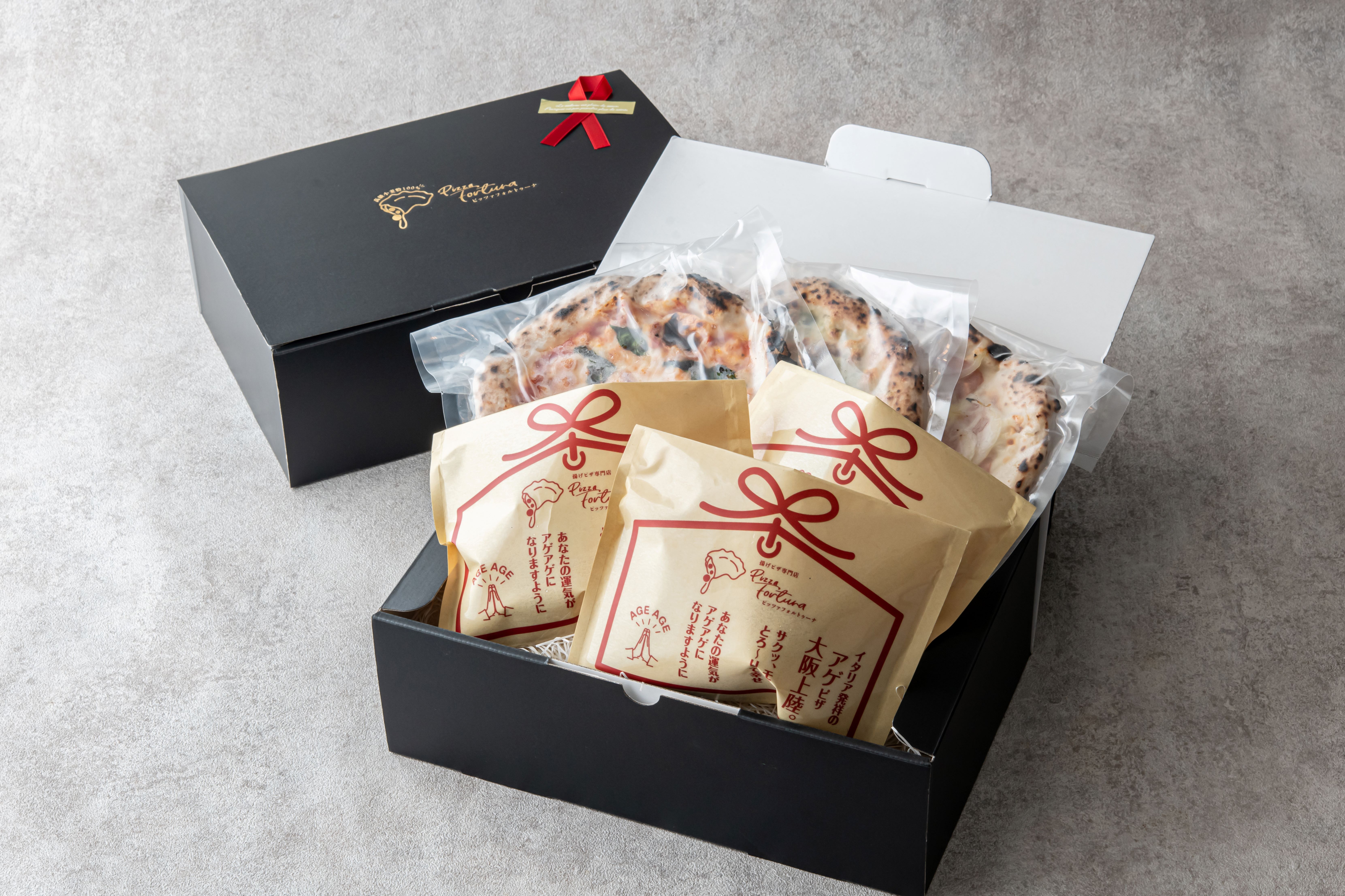 全国の家庭や家族にも味わってほしいと誕生させた揚げピザや石窯ピザのギフトBOXセット。