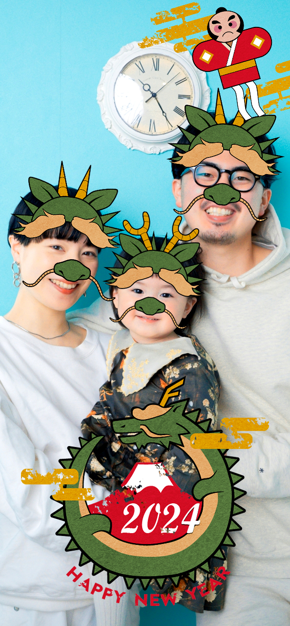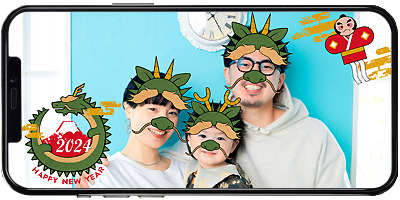 カメラをかざすだけで顔を自動で認識するので、2024年の干支「タツ」になったかっこいい写真が簡単に撮れます。
