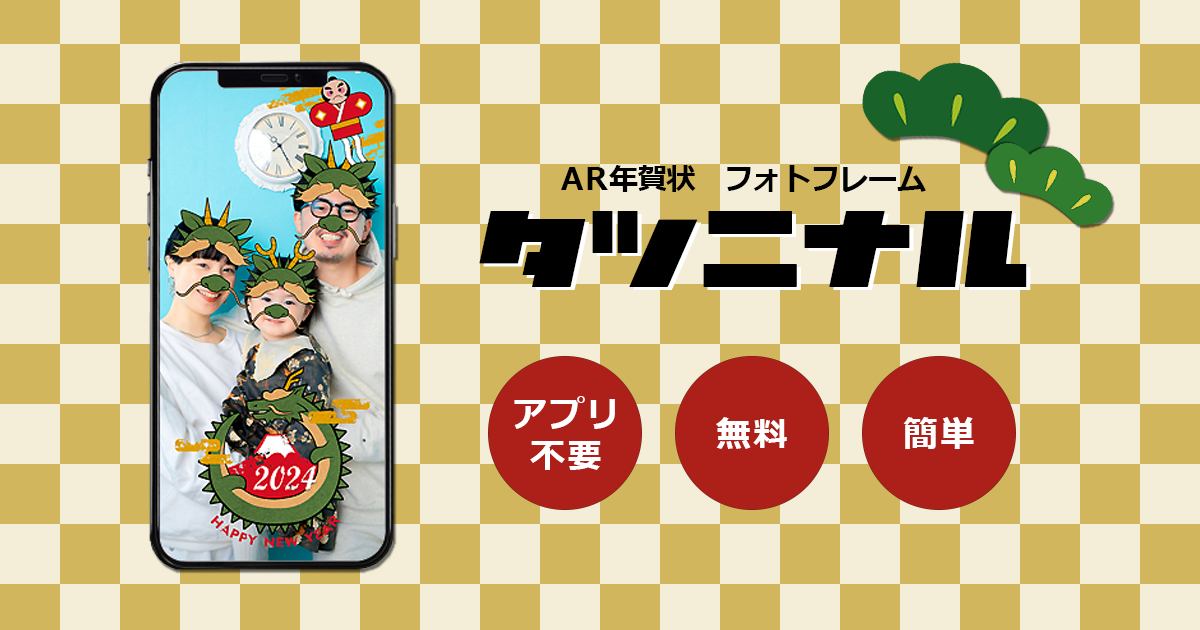 株式会社マイスター・ギルド(本社:大阪市北区/代表取締役:見取英明)は2023年11月10日より、ARカメラを使って誰でも簡単に撮影・作成ができる年賀状フォトフレームサービス「タツニナル」の提供を開始いたします。